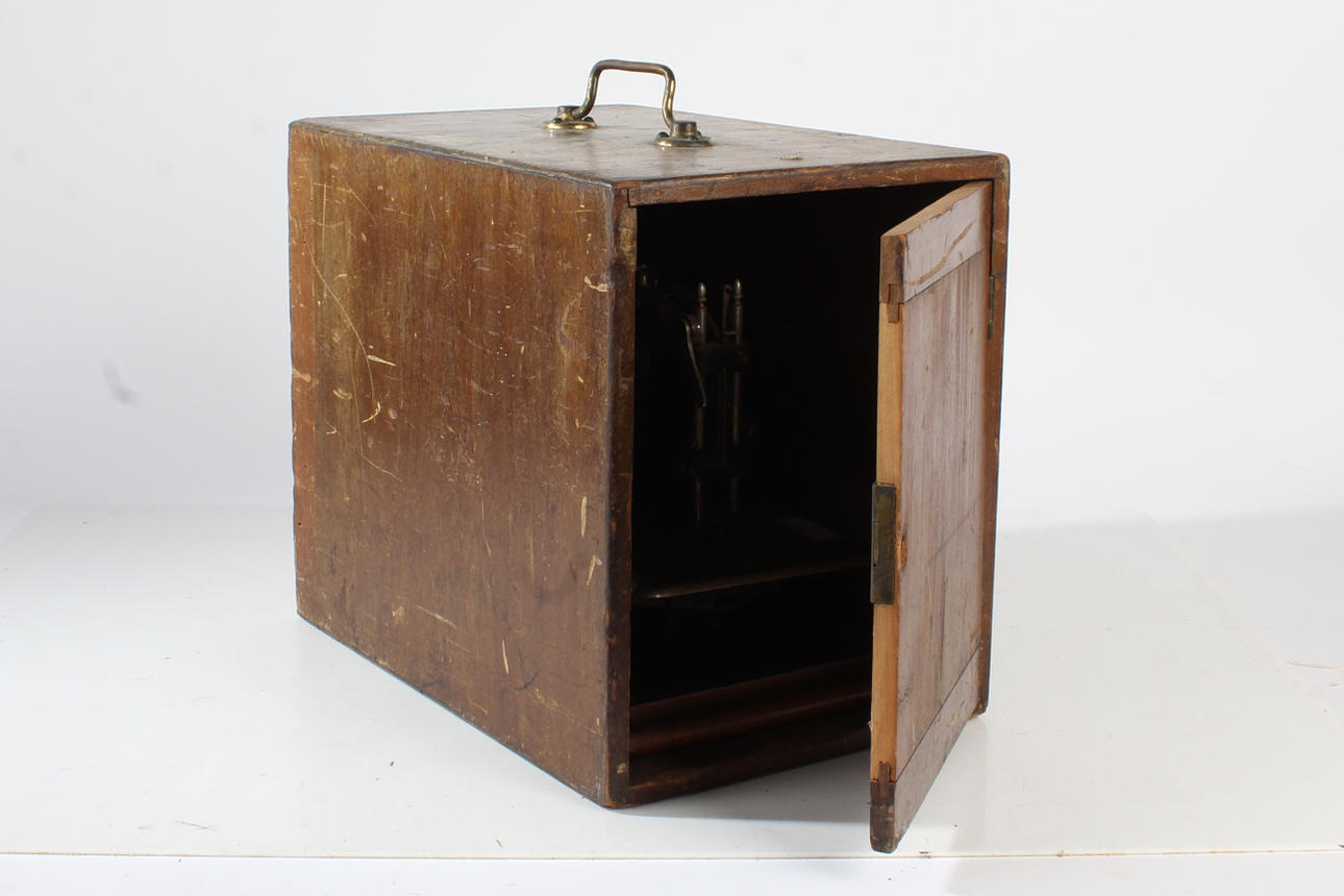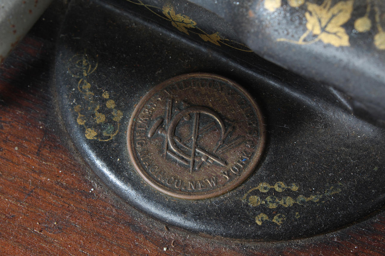 A 19th century Willcox & Gibbs sewing machine, Model number A465355, housed within a wooden case, 36cm wide.