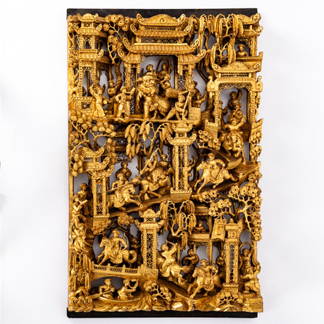 2912363. BROOCH WITH CARVING OF VINES AND OPENWORK LEAVES. 18 K YELLOW GOLD SETTING.