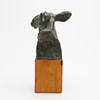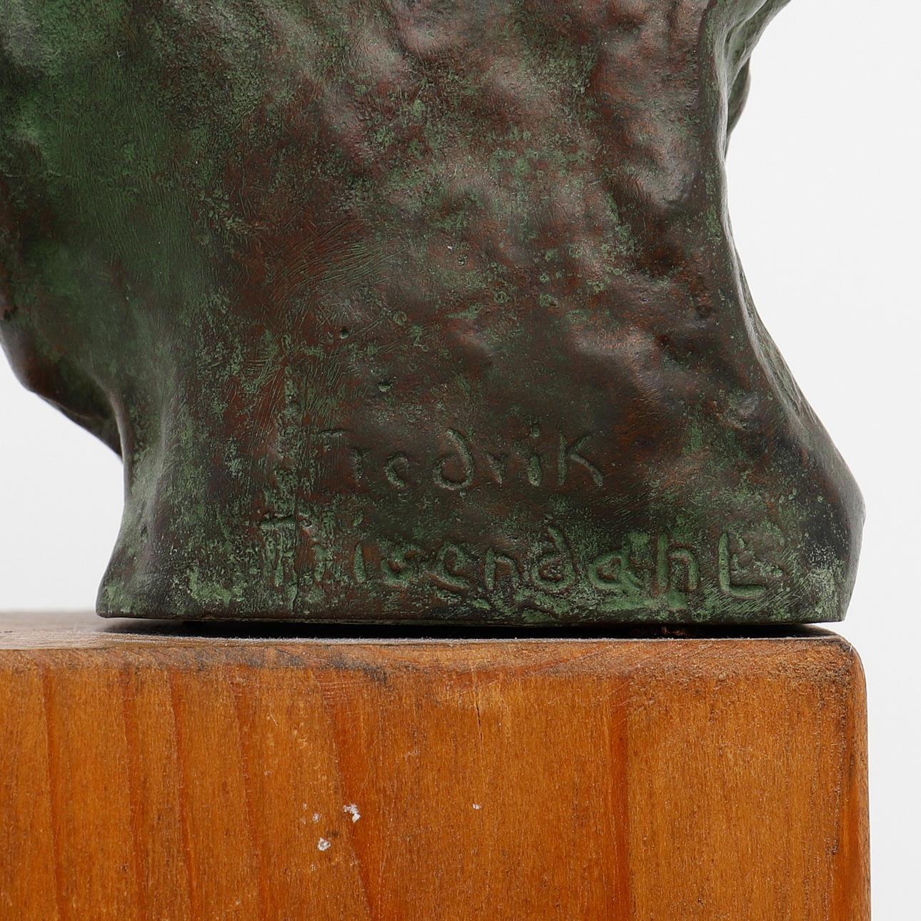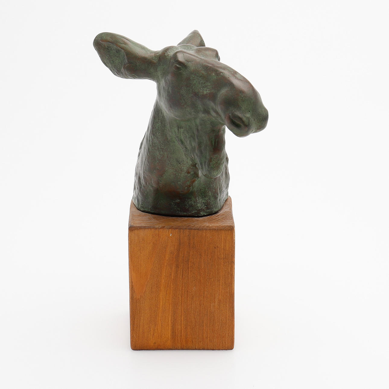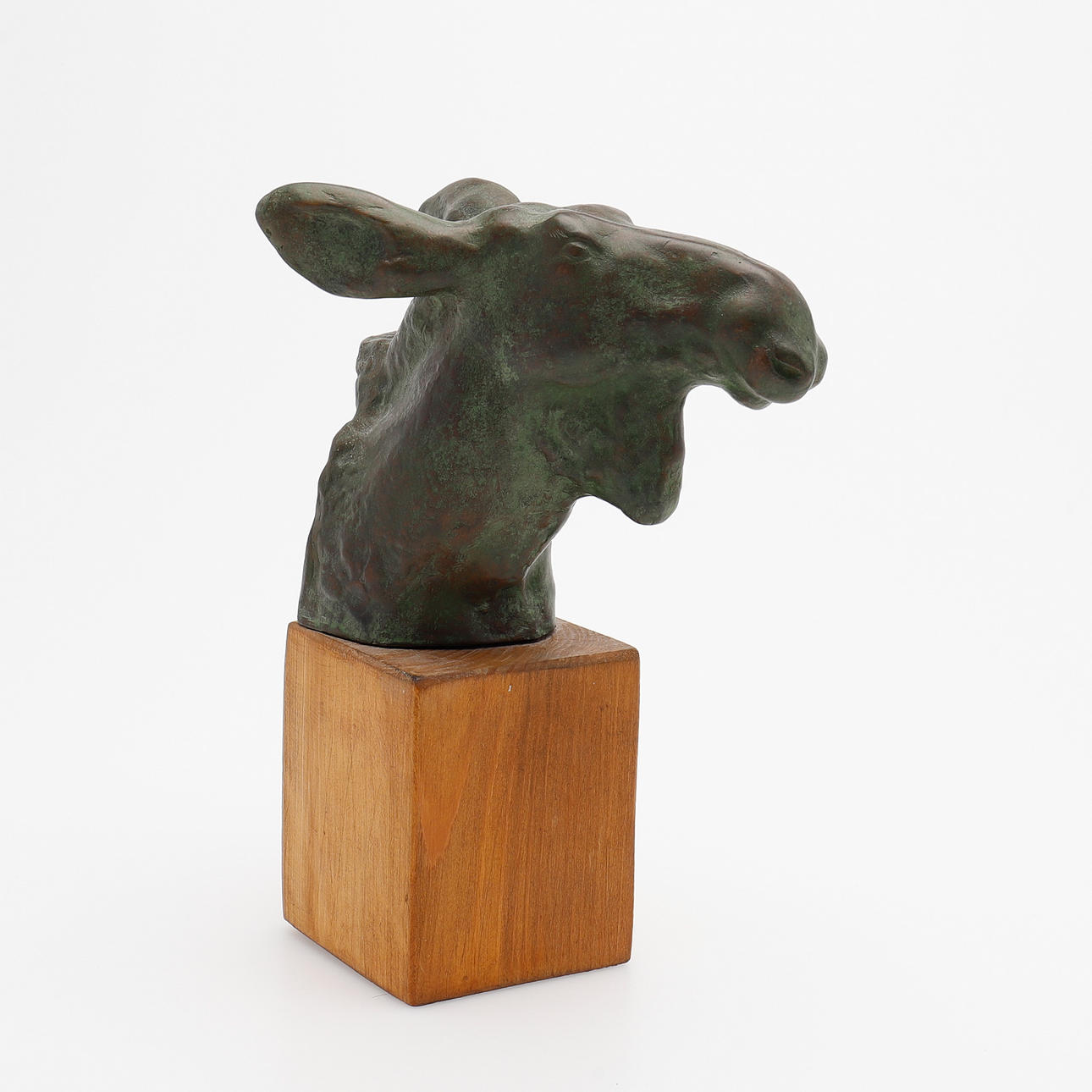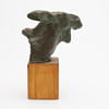 Sculpture, green patinated bronze, signed, indistinct caster's stamp, mounted on wooden plinth, total height 21.5 cm.