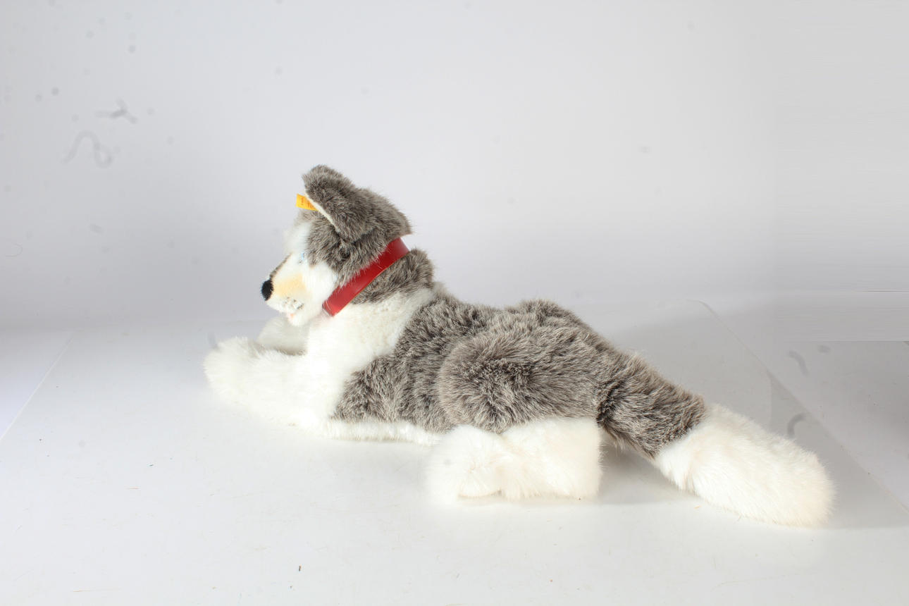 2914882. STEIFF HUSKY 'MOLLY' WITH BUTTON AND LABEL.