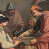 Théophile Marie Françoise Lybaert (1848 Ghent – 1927 ibid), 'Dice Player', oil on canvas, signed in the middle right, framed, image size: 25 x 32 cm, frame size: 48 x 54 cm.