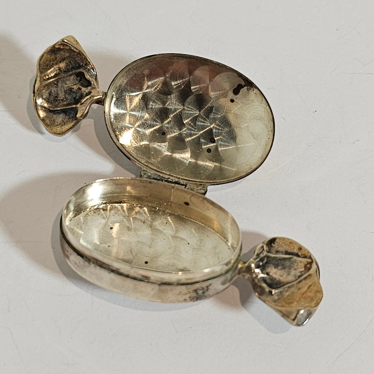 SILVER "CANDY" PILL BOX WITH MARQUESITE APPLICATIONS.