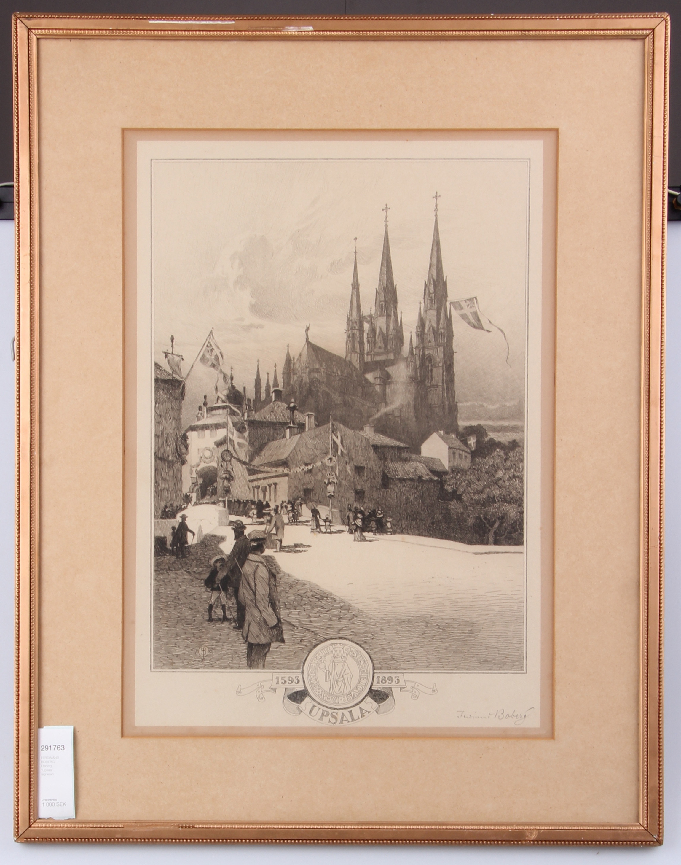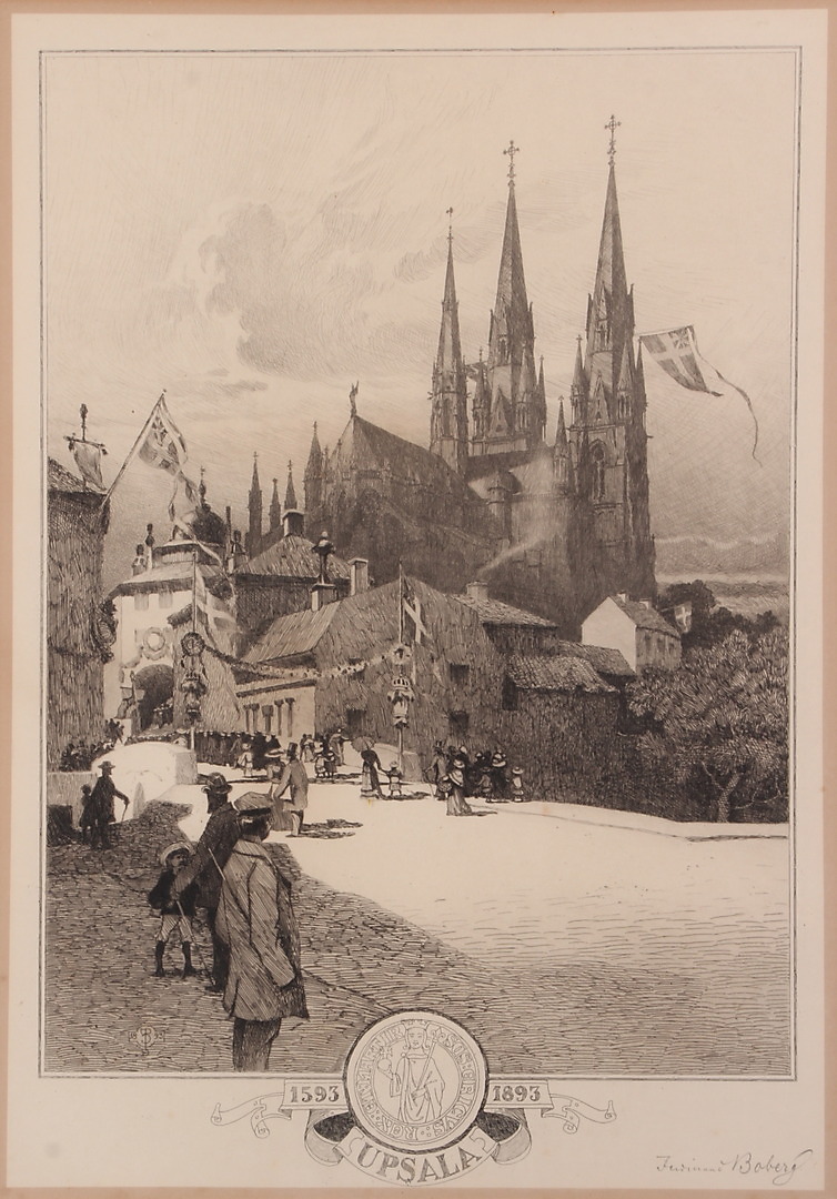 291763. FERDINAND BOBERG. Etching, "Upsala", signed.