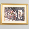 Watercolour, a young boy at a door of a 19th century interior with a crowd of people looking on. The cover work for Time Junction by Helen Solomon. With layout design pasted to the reverse and inscribed 'presented with the compliments of Good reading Ltd ... Christmas 1975'. 22 x 33cm framed and glazed, 34 x 45cm overall.