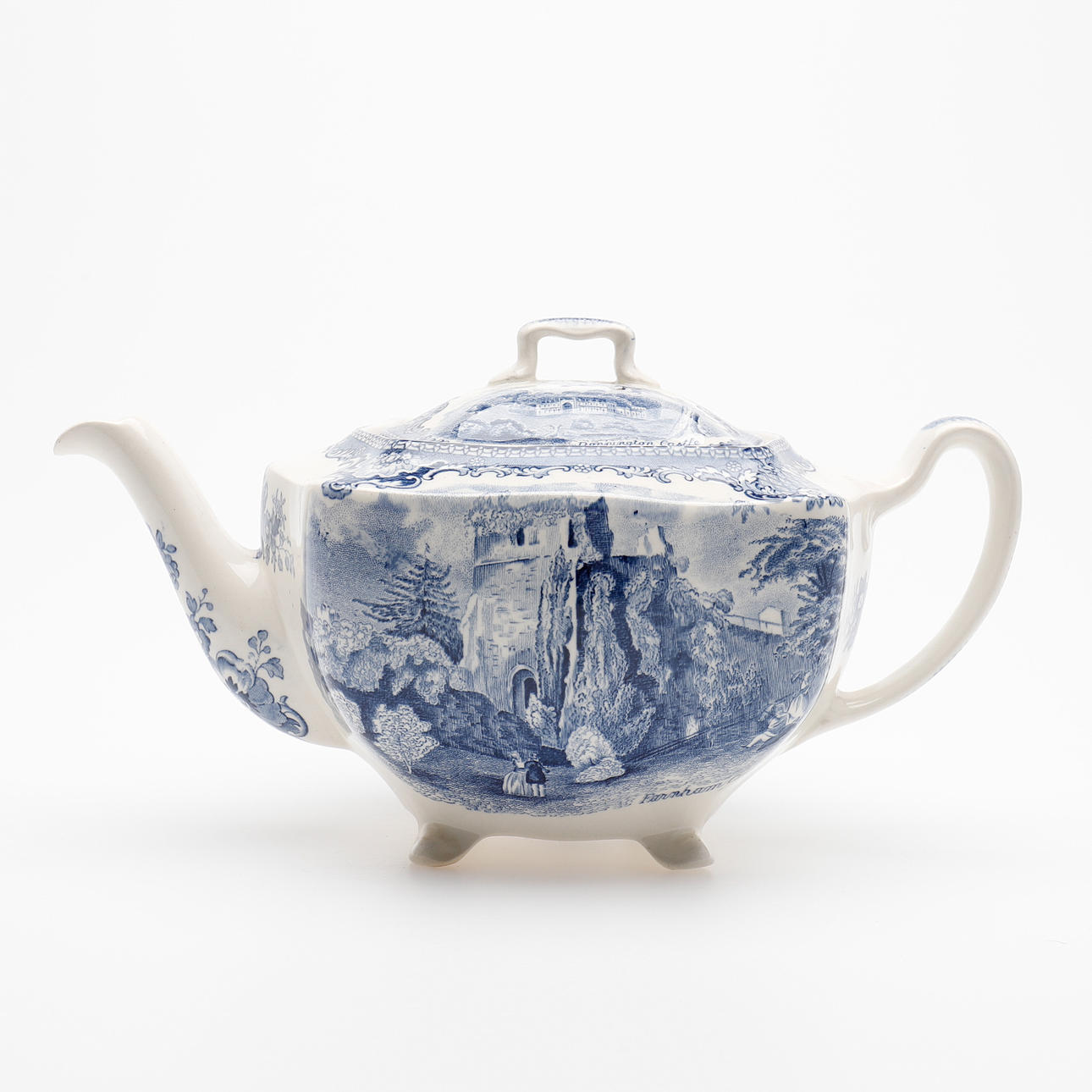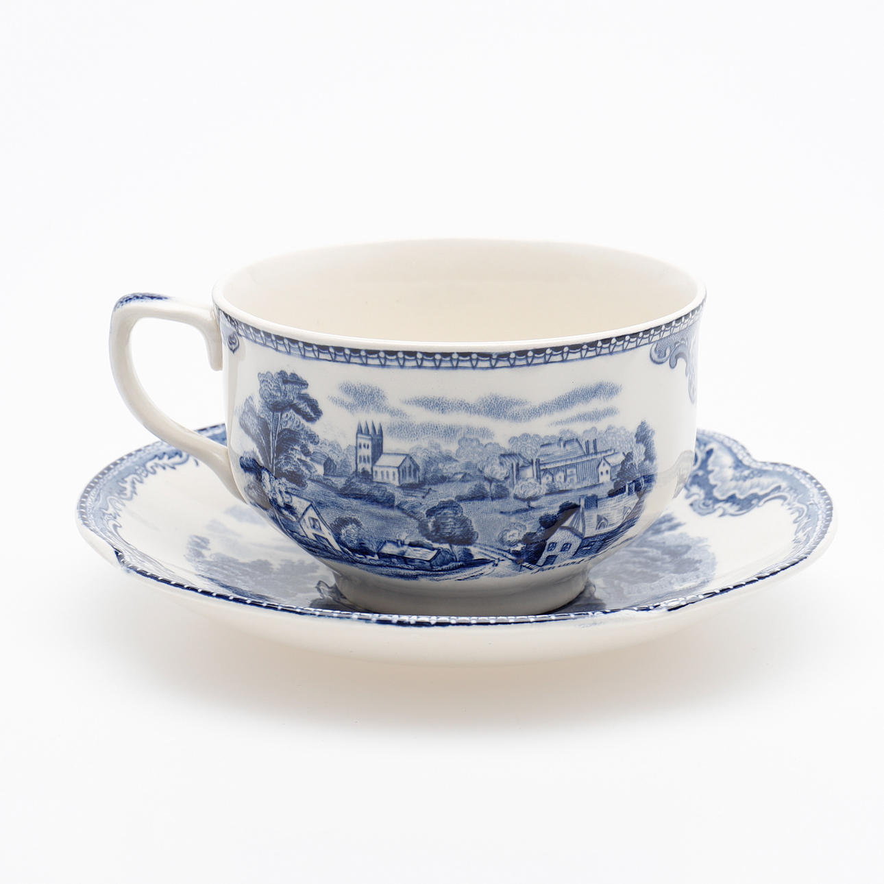 Teapot, sugar bowl with cover, creamer. 12 cups with saucers, 12 plates.
