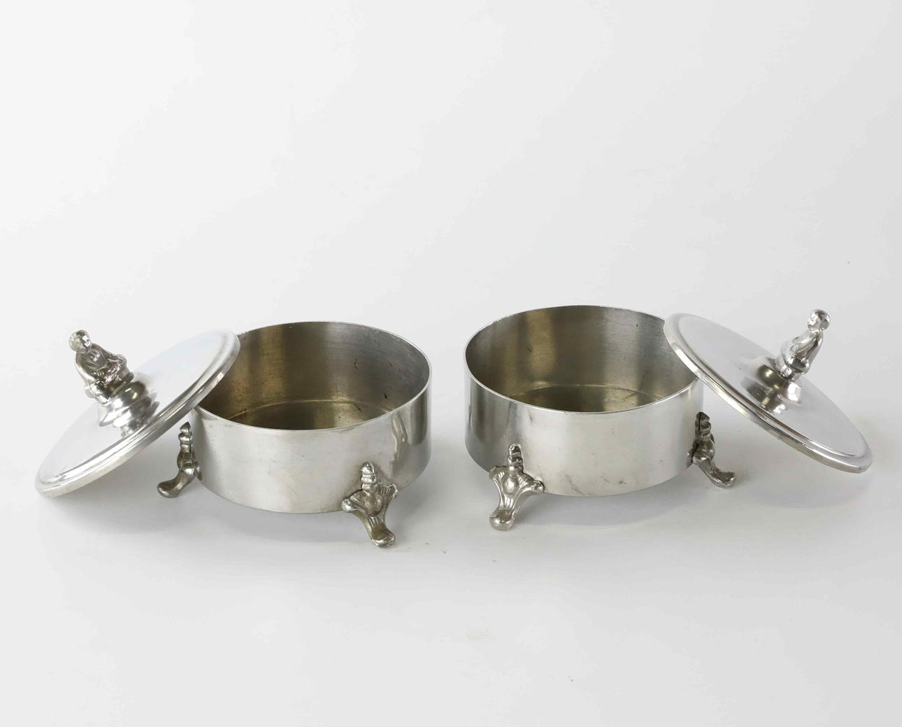 Normal wear and tear, scratches, uneven edges on the lids, dents are present.