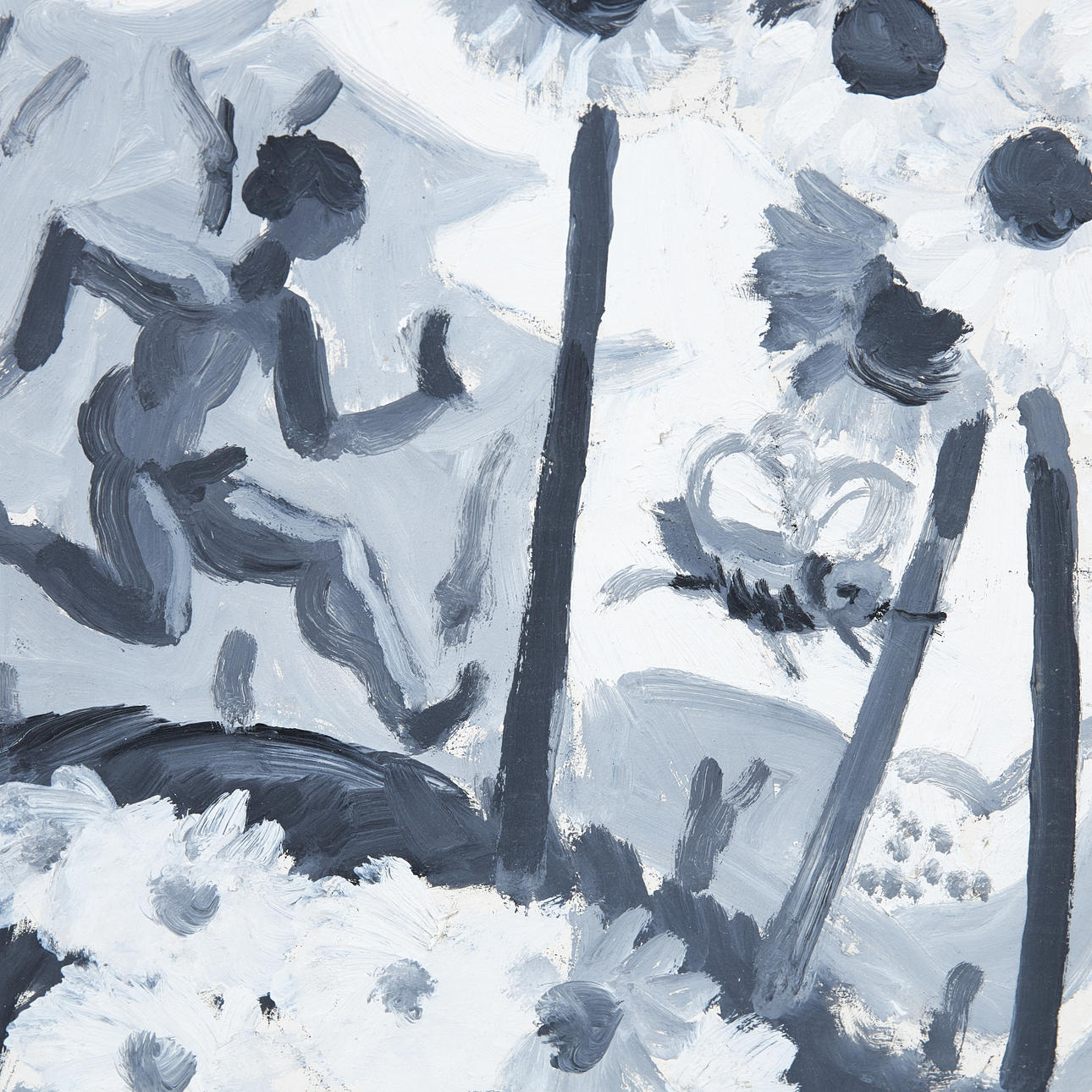 IVÁN GRÜNEWALD. Running figures, oil on Board.