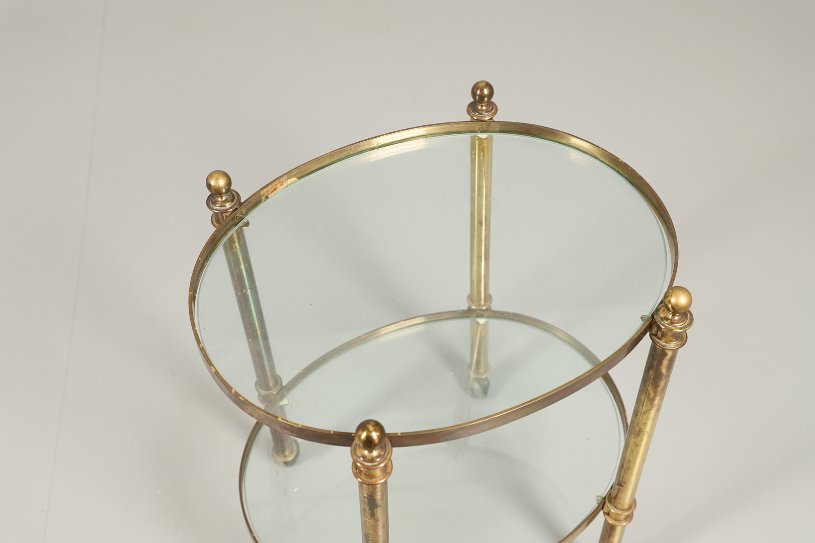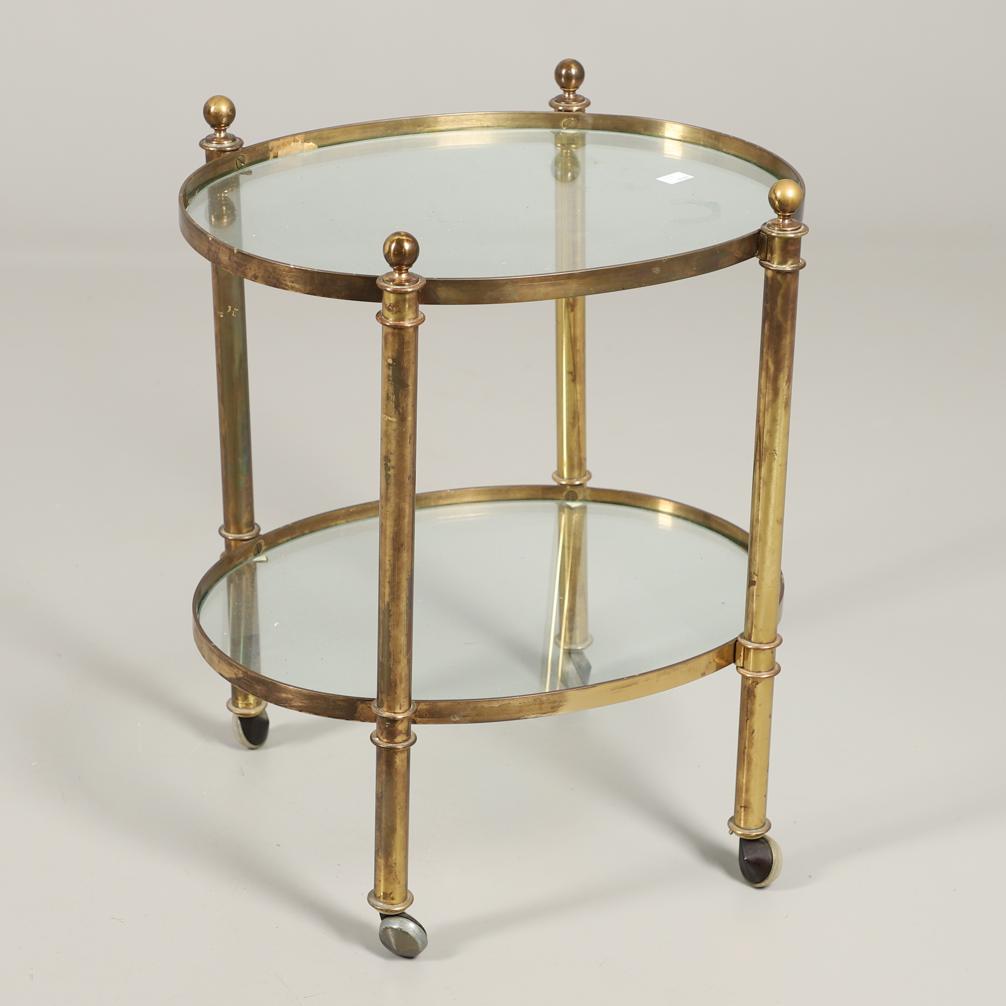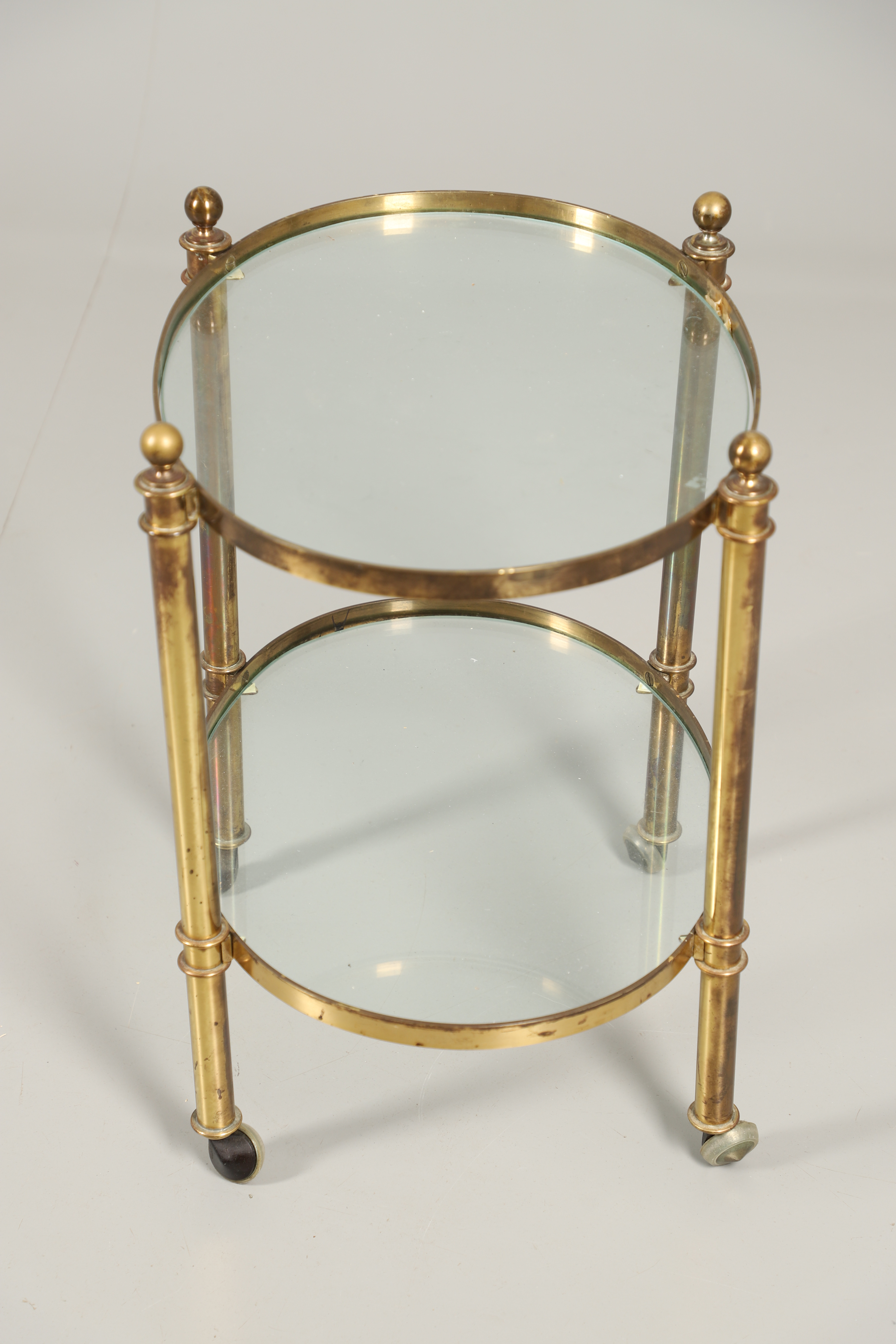 2924600. A SMALL BRASS TWO TIER TABLE.
