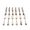 6 forks, length 21 cm. Weight 380 gr, 6 knives, length 25 cm. Blade not silver. Weight 430 grams.