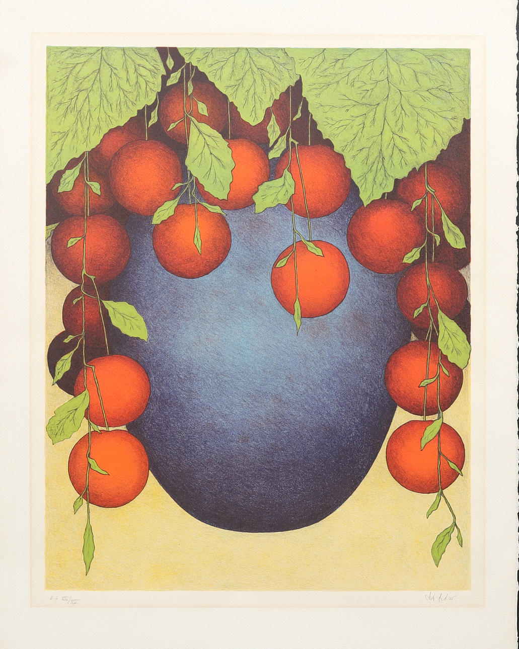 Fruit still life: leaf dimensions 70x56 cm.