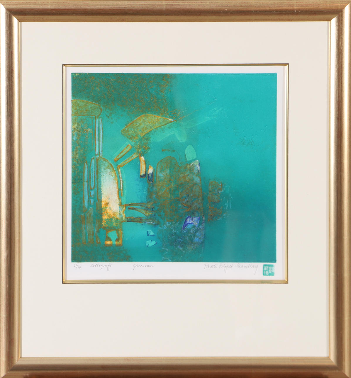 2936645. KERSTI RÅGFELT STRANDBERG. "Green rooms", collography, signed.