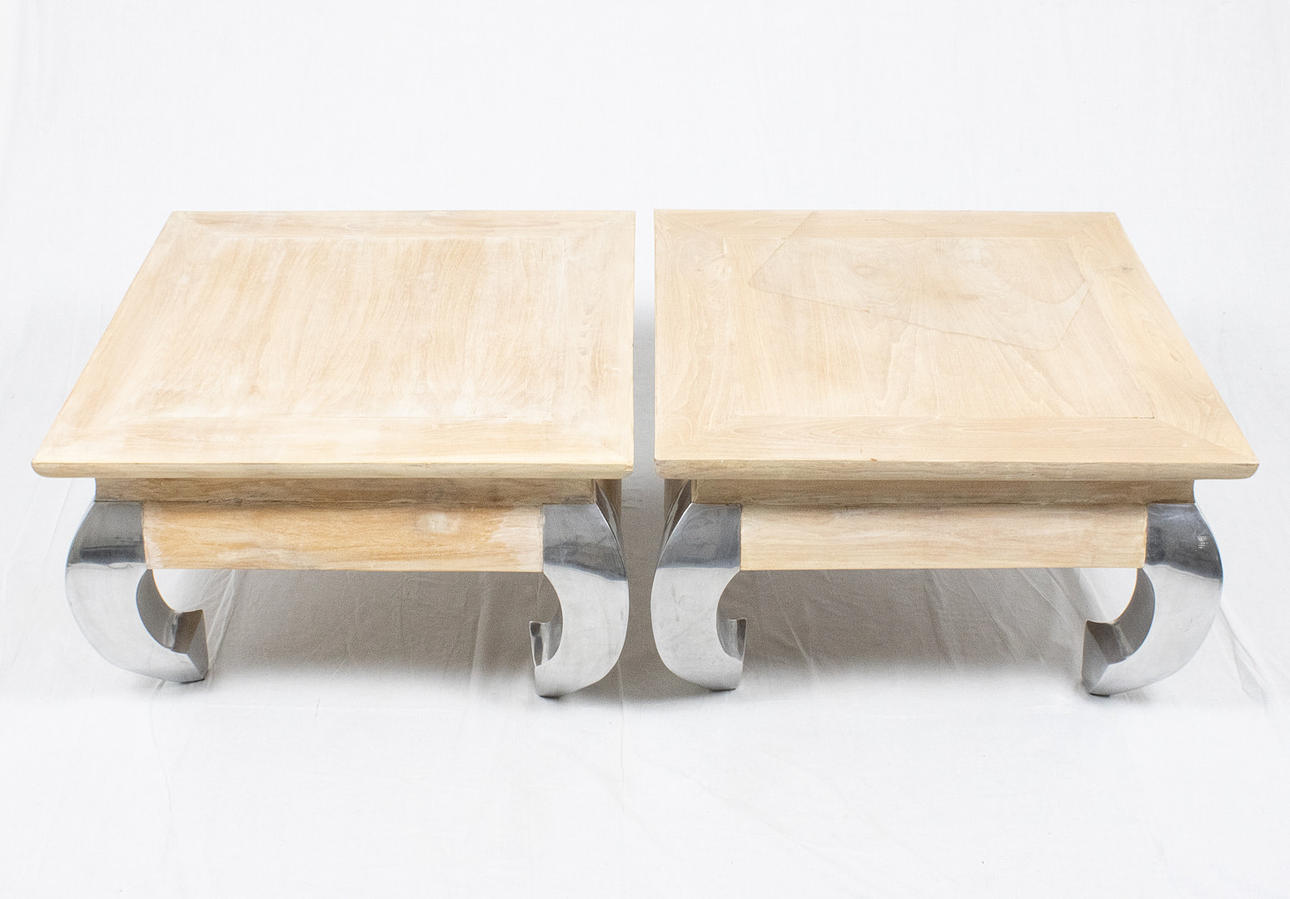 2937882. COFFEE TABLE 2 pcs. Opium table, Light wood stained Chrome legs.