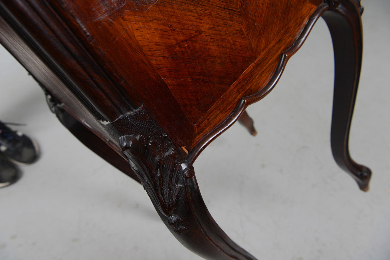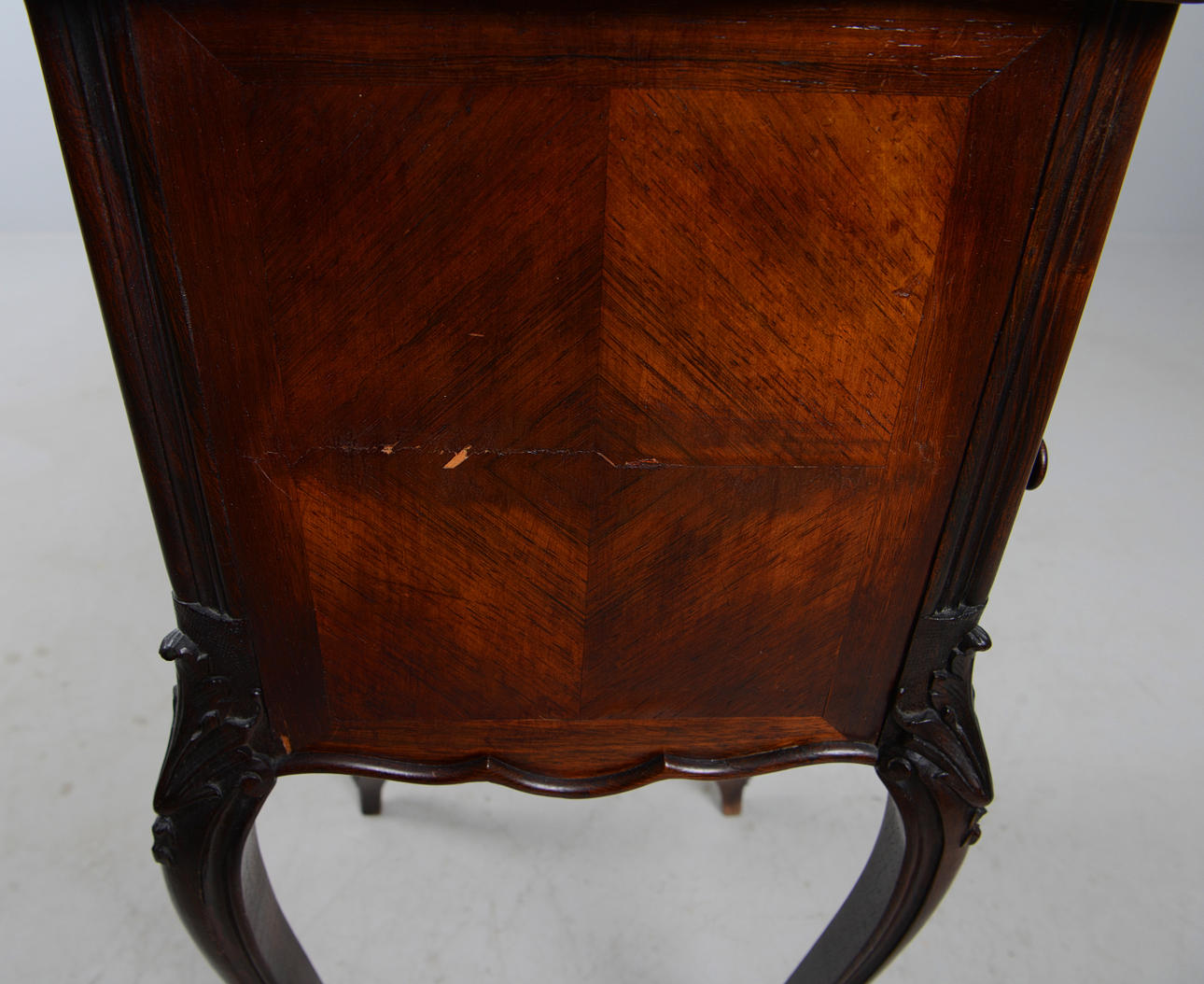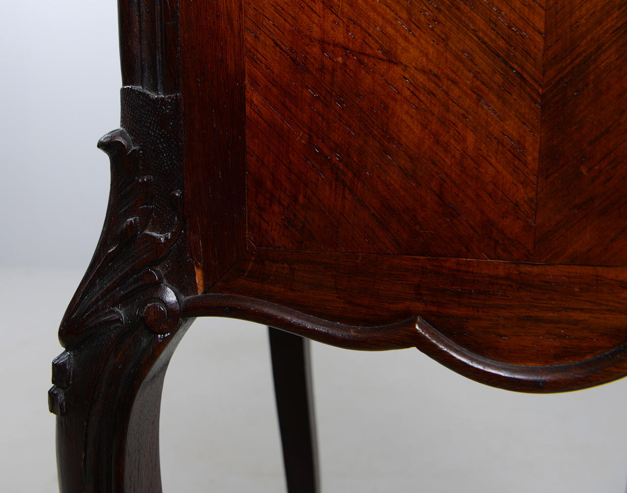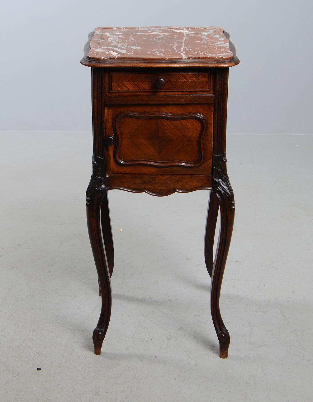 With stone disc, deepened line in the disc. Cut decor. Felt-covered cabinet part. 40 x 40 cm. Height 85 cm.