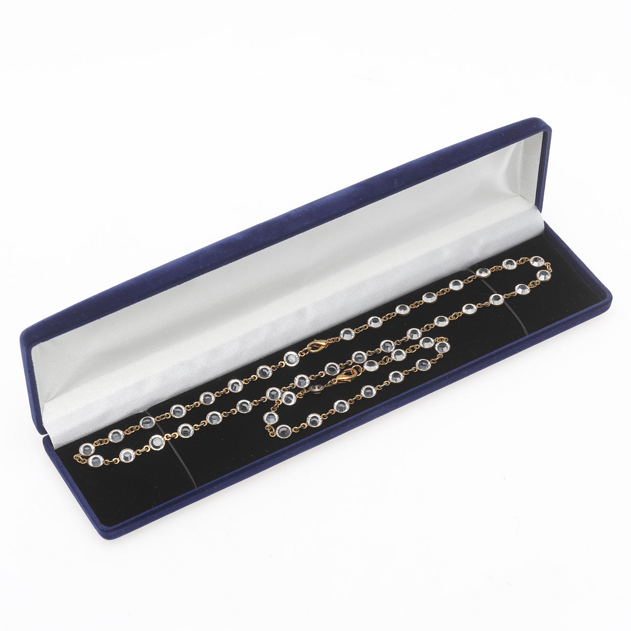 2943020. NECKLACE & BRACELET, brass & Swarovski.