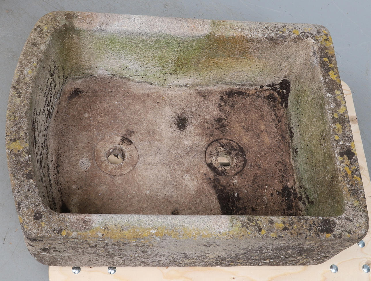 2944436. A WEATHERED SANDFORD STONE OBLONG PLANTER.