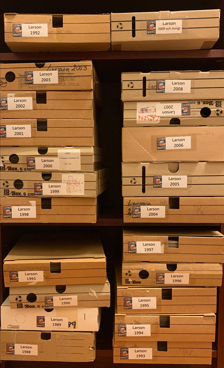 Comic books. Comic book Larson probably complete from 1988-2009. The newspaper was closed by Schibsted publishing house in 2009. Each newspaper in a transparent plastic pocket. The newspapers are housed in 22 small boxes.
