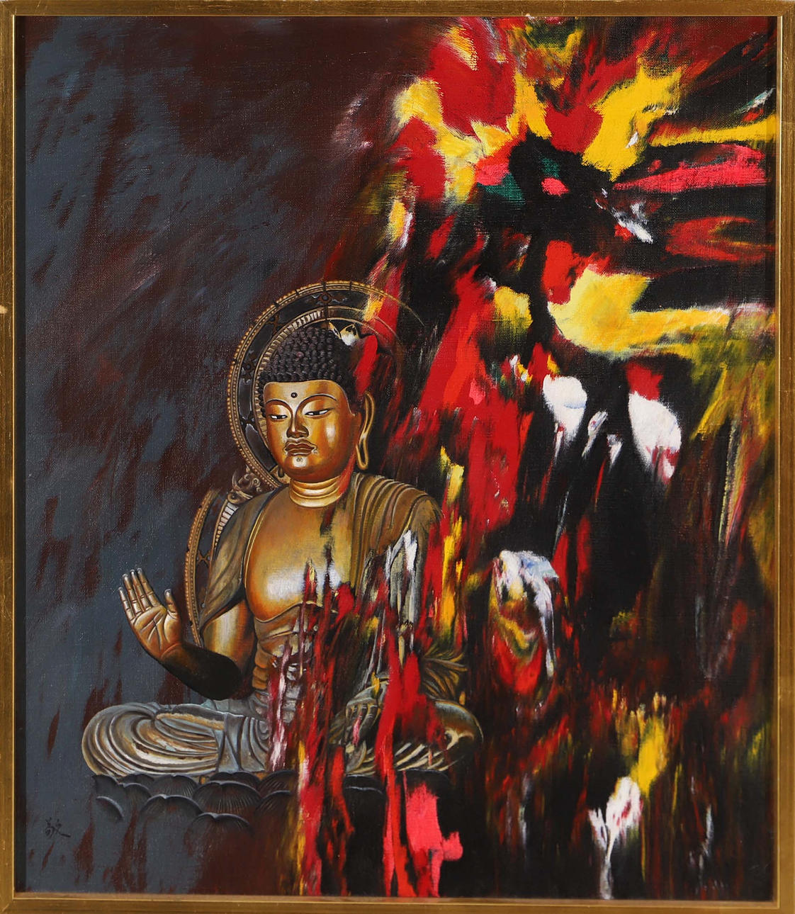 2945124. KEIKO RYU. Buddha, oil on canvas, signed.
