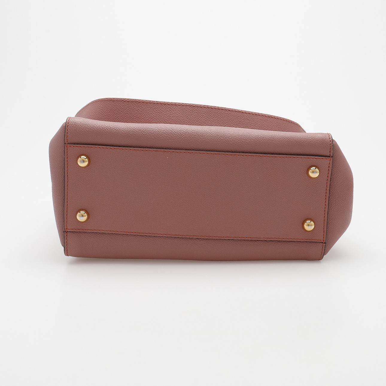 Grained calfskin, "dusty pink" and textile with Burberry tartan pattern, brass buckle and fittings, magnetic closure, two handles and detachable shoulder strap, interior with three compartments, one of which is zipped, marked "Burberry London England", "Made in Italy", size medium, width approx. 30 cm. Dust bag, tag and product care instructions included.