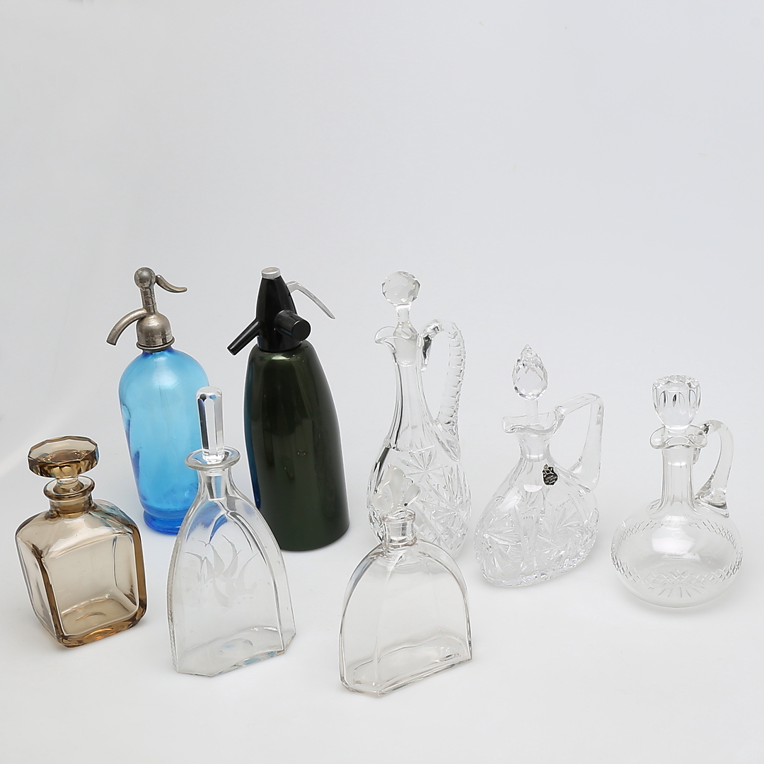 294972. CARAFES and siphons, 8 pieces.