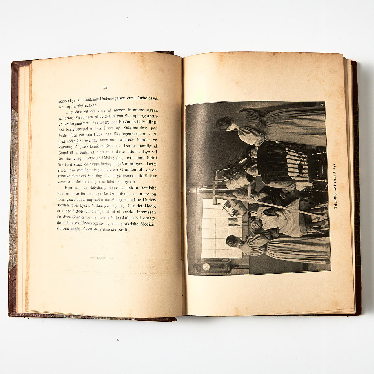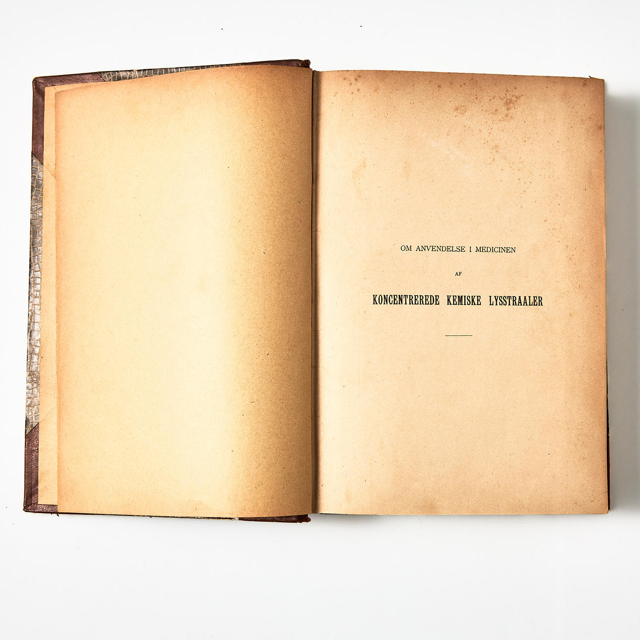 Compilation tape containing: FINSEN, NIELS RYBERG. On the application in medicine of concentrated chemical light rays. Copenhagen, 1896. 52 pp. 2 plates. Associated with: FINSEN, NIELS RYBERG. Announcements from Finsens Medicinske Lysinstitut I. Köbenhavn, 1899. (6),165 pp. Associated with: BANG, SOPHUS. On the effects of light on microbes. 1. Variations in the resistance of B. prodigiosus according to culture age and temperature. U. oo å. 100 pp. Bound with: FINSEN, NIELS RYBERG. The report from Finsen's Medical Light Institute 1st January 1898-31st December 1899. U. oo å. 29 pp. Bound with: FINSEN, NIELS RYBERG. Announcements from Finsen's Medical Light Institute IV. Copenhagen, 1902. (2), 144 pp. Associated with: FINSEN, NIELS RYBERG. On the treatment of Lupus vulgaris with an account of the results obtained in Denmark. Copenhagen, 1902. 10, (1) pp. 16 plates.