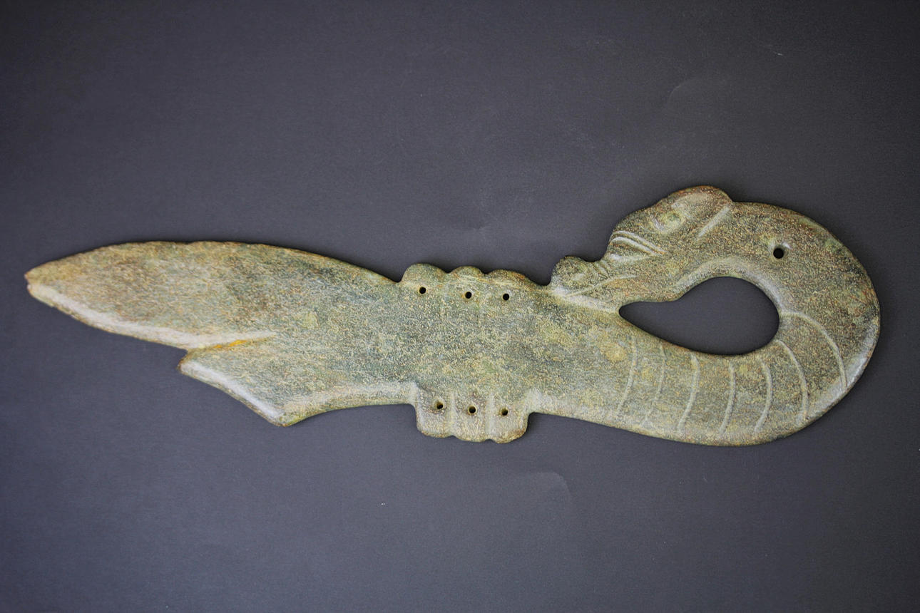 CHINESE ARCHAIC FORM RITUAL DAGGER WITH DRAGON HILT.