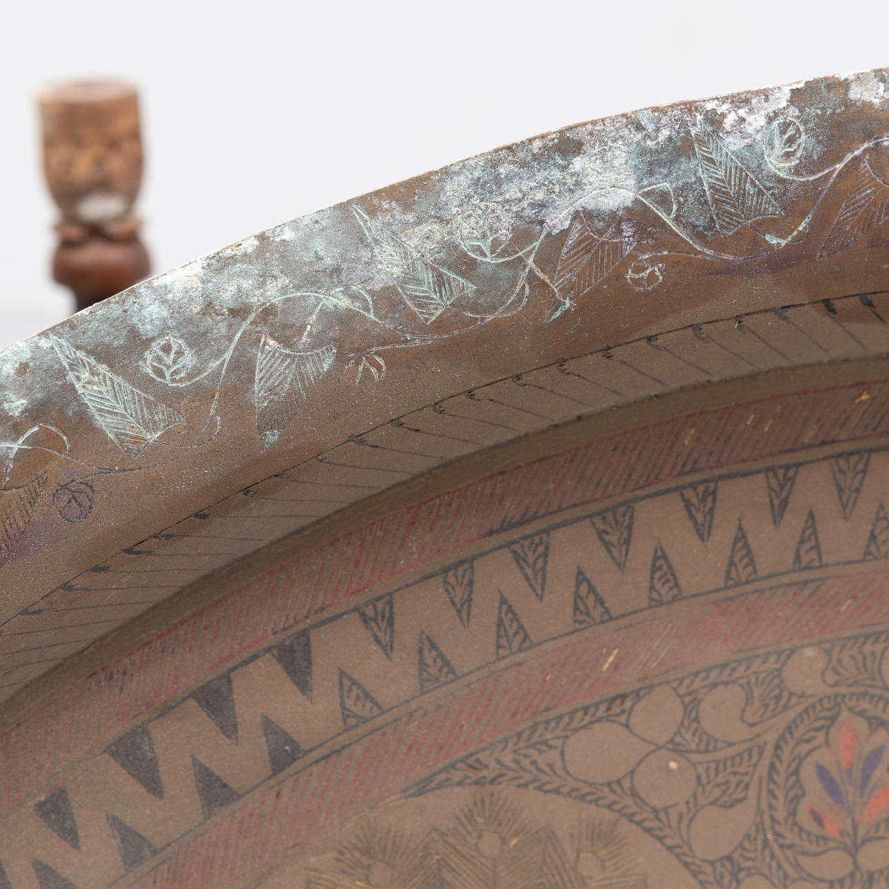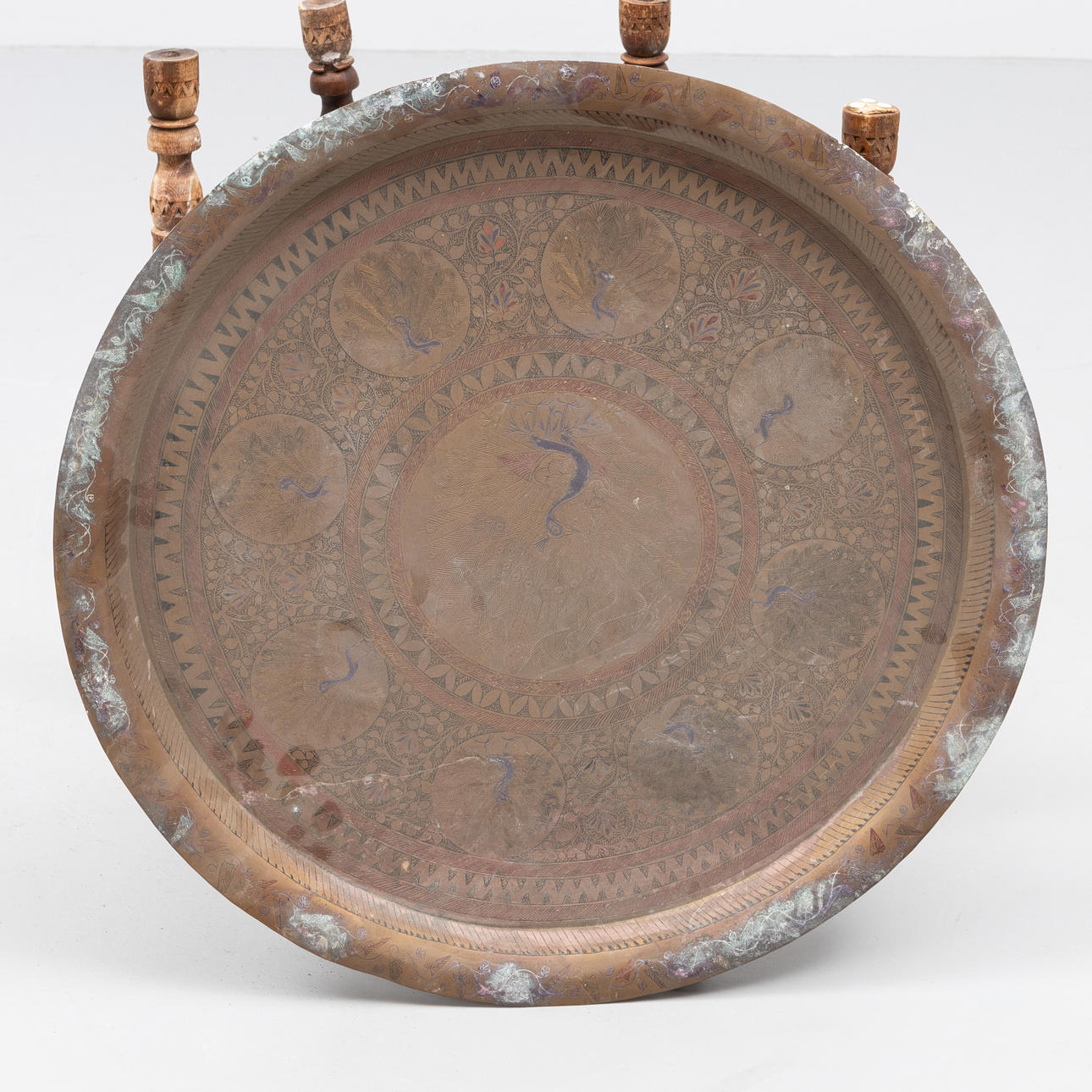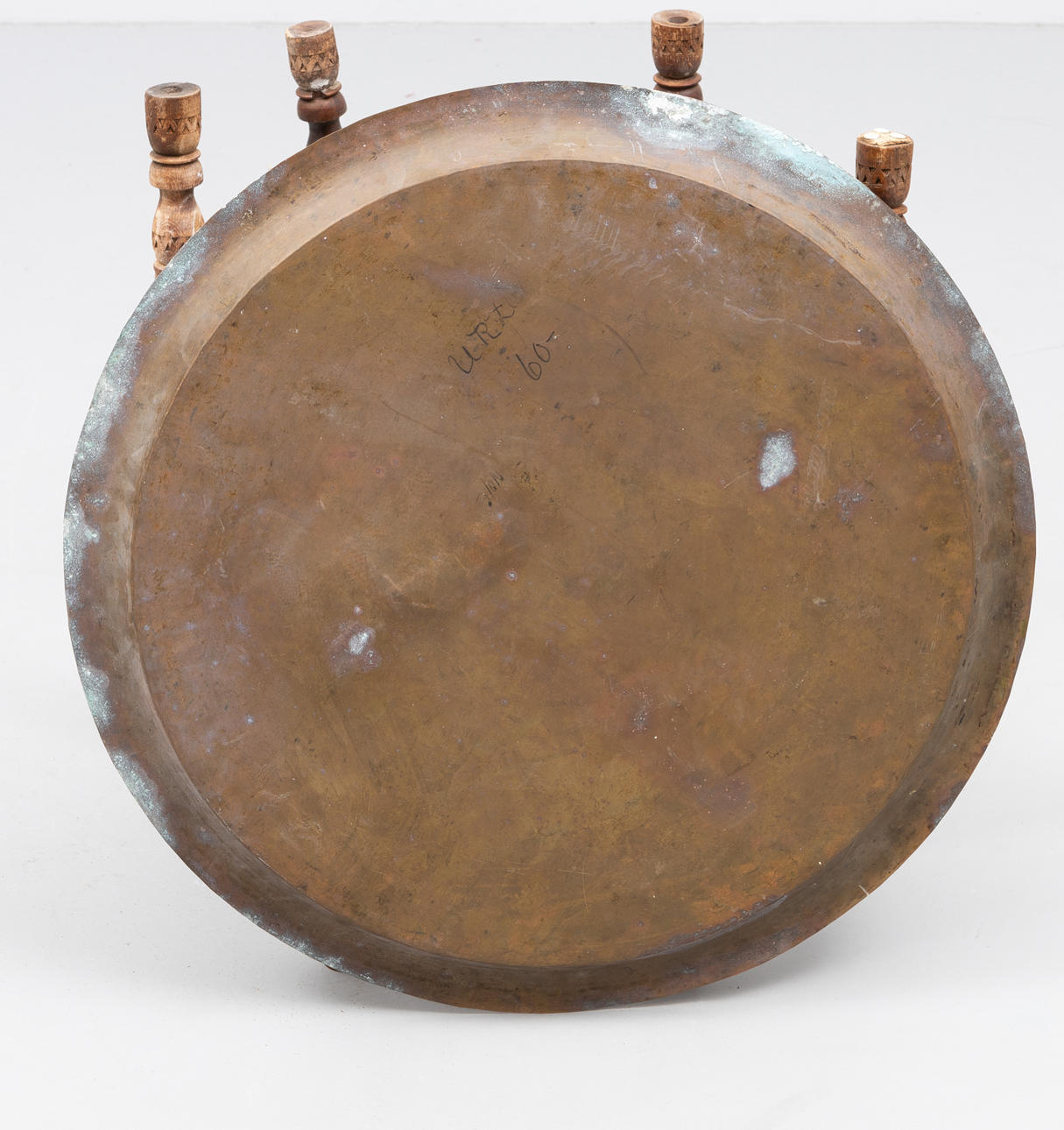 Disc with decoration of peacocks, partly painted, diameter 58 cm. Height approx. 53 cm.