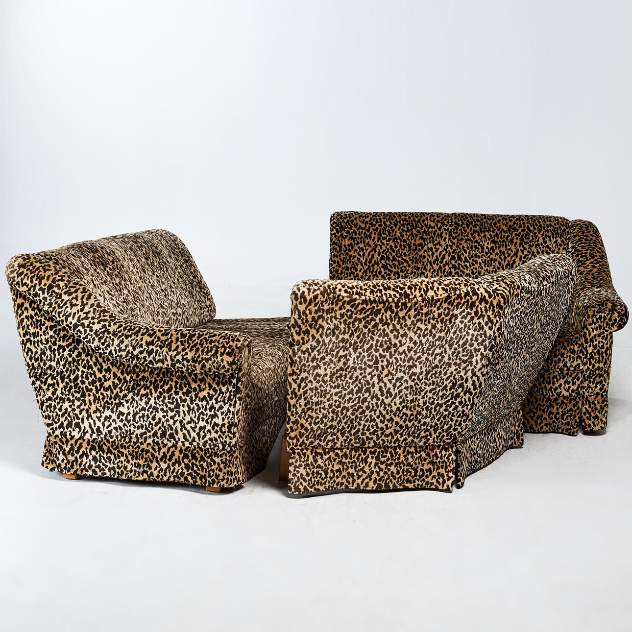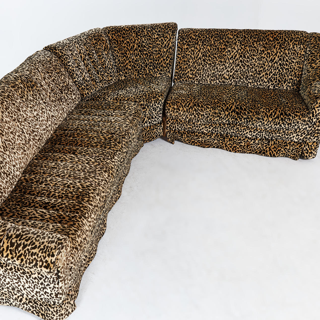 2955128. SOFA, corner model, 1970s, three modules, textile upholstery, leopard print.