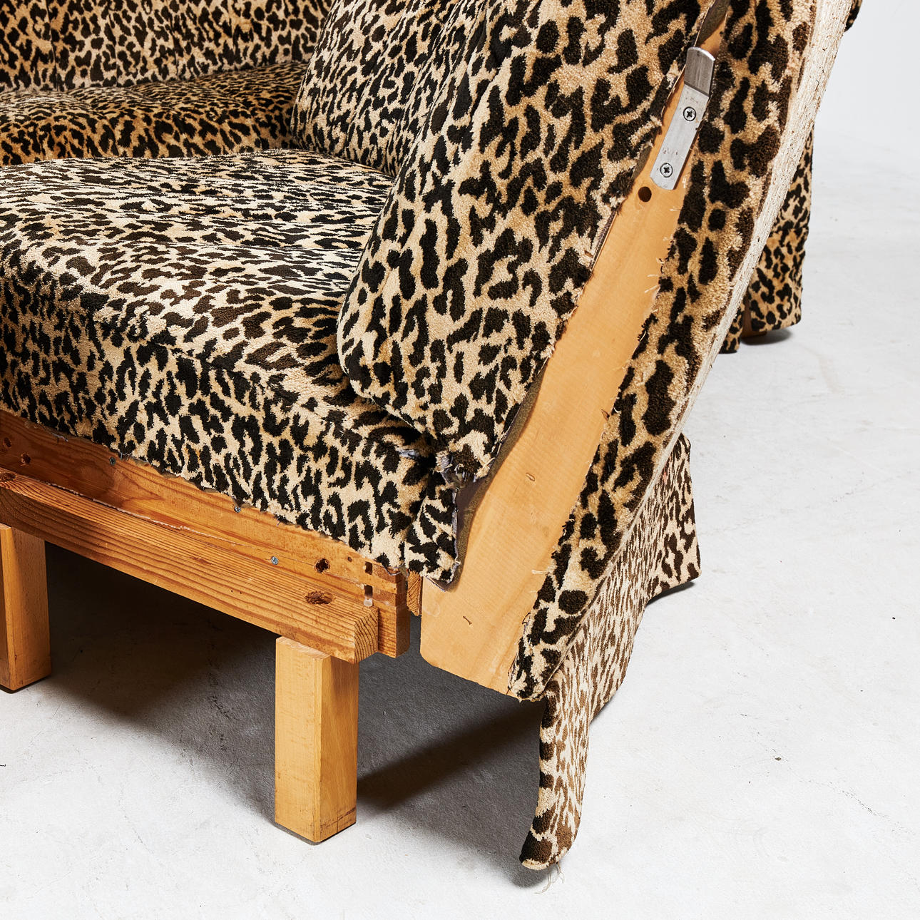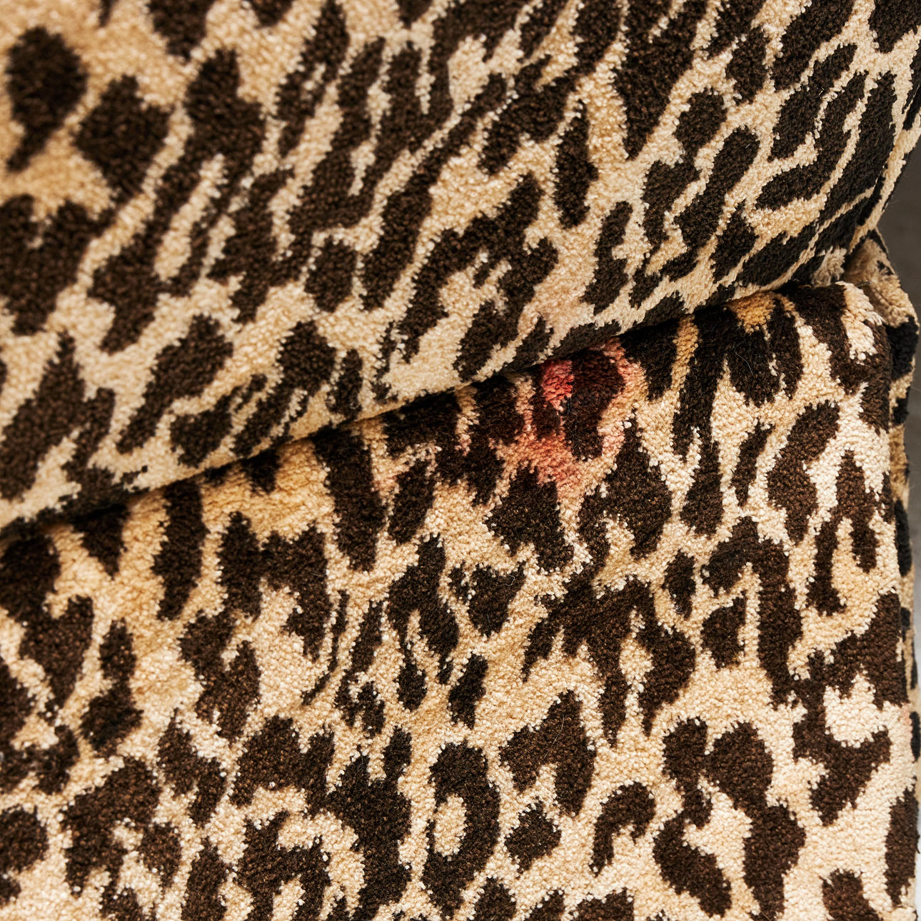 SOFA, corner model, 1970s, three modules, textile upholstery, leopard print.