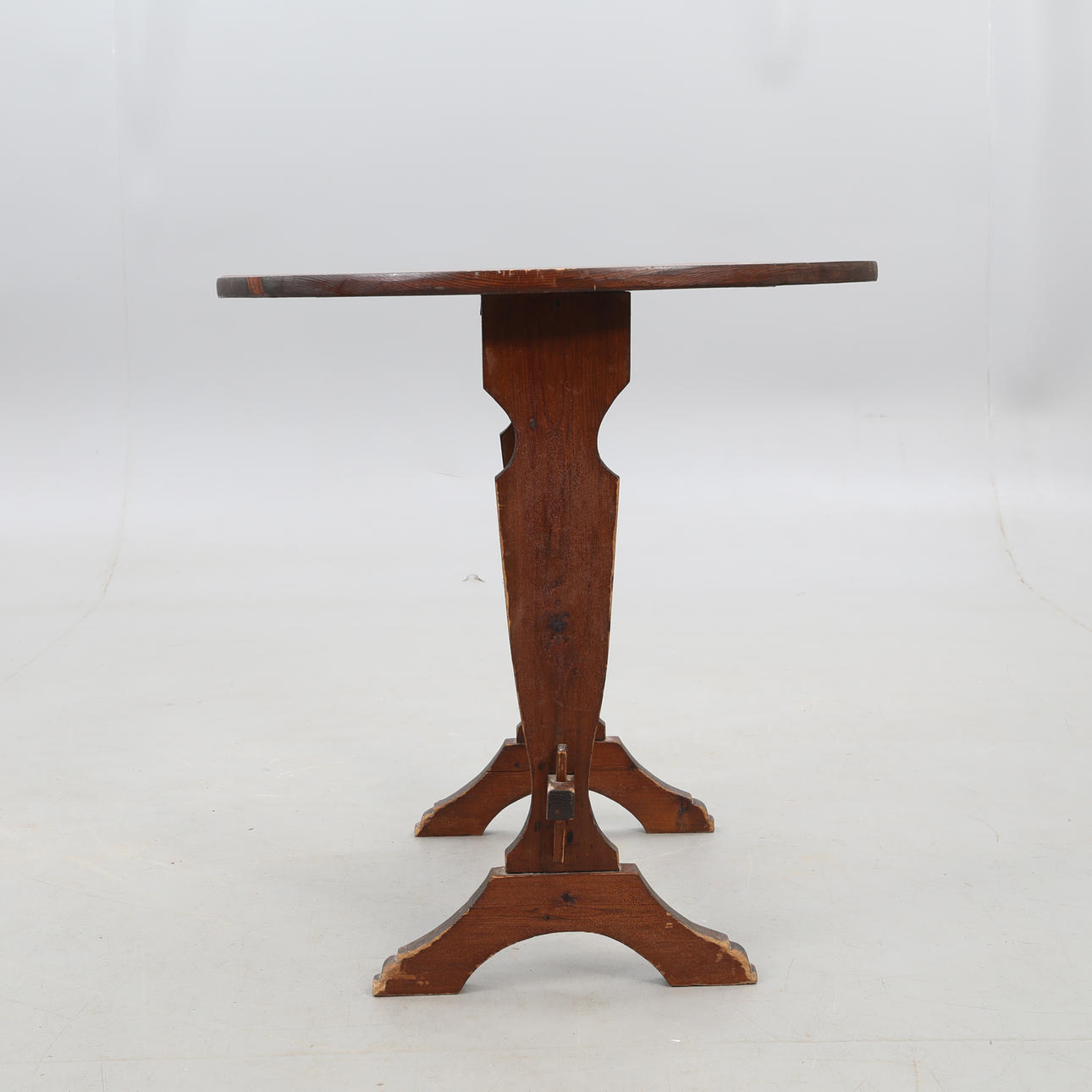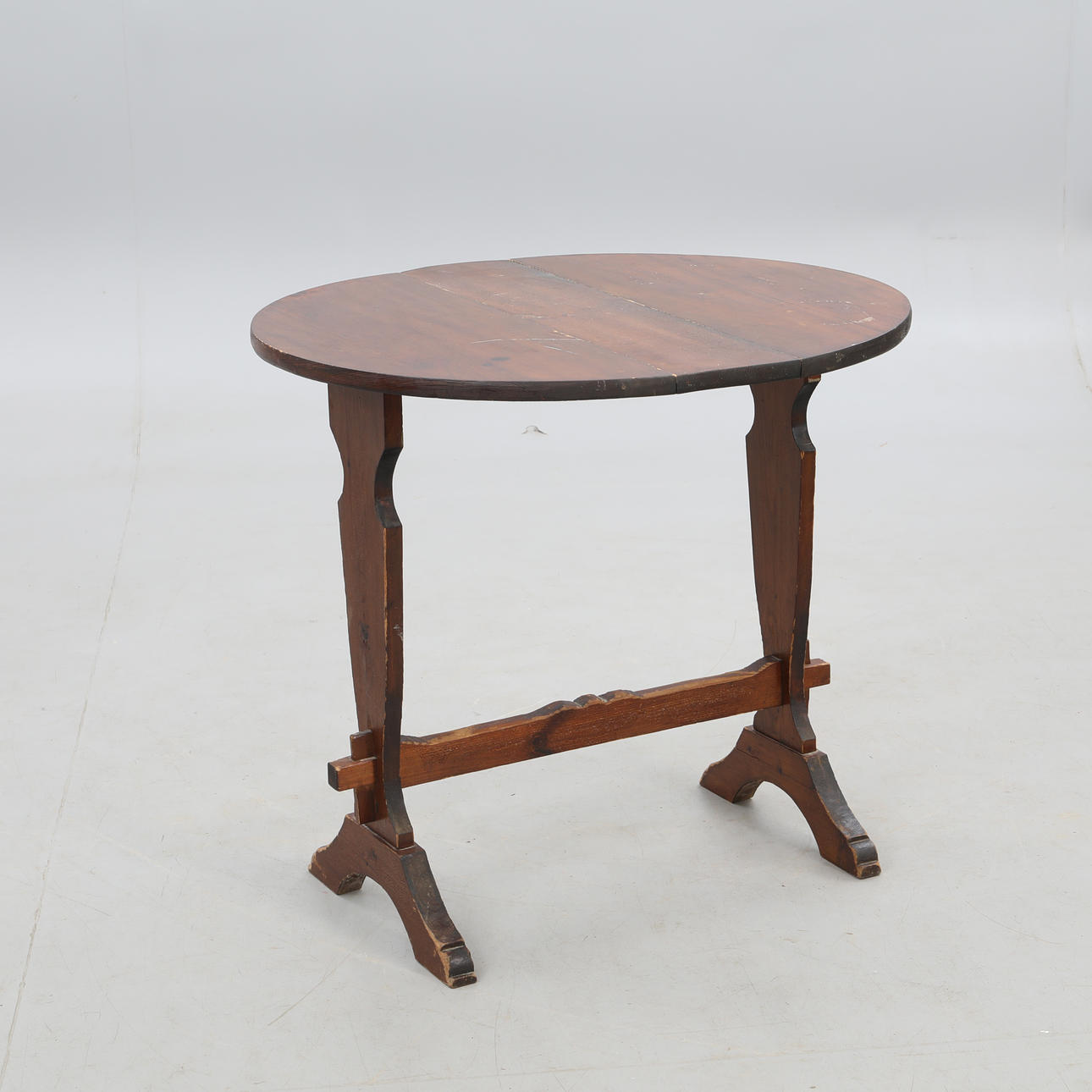 FLAP TABLE, round flaps, stained pine, mid-20th century.