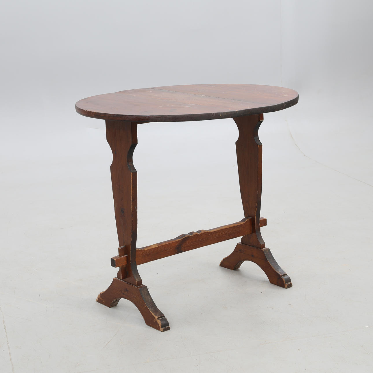 2955794. FLAP TABLE, round flaps, stained pine, mid-20th century.