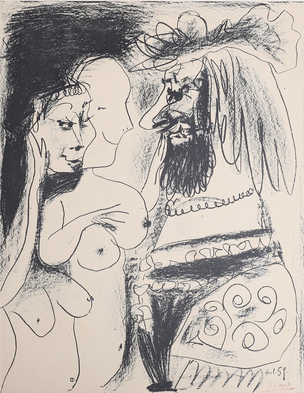 In the print signed in red and dated 6/1 1959, lithograph, from an edition of 1000 copies, printed on Arches, sheet size 67x51 cm.