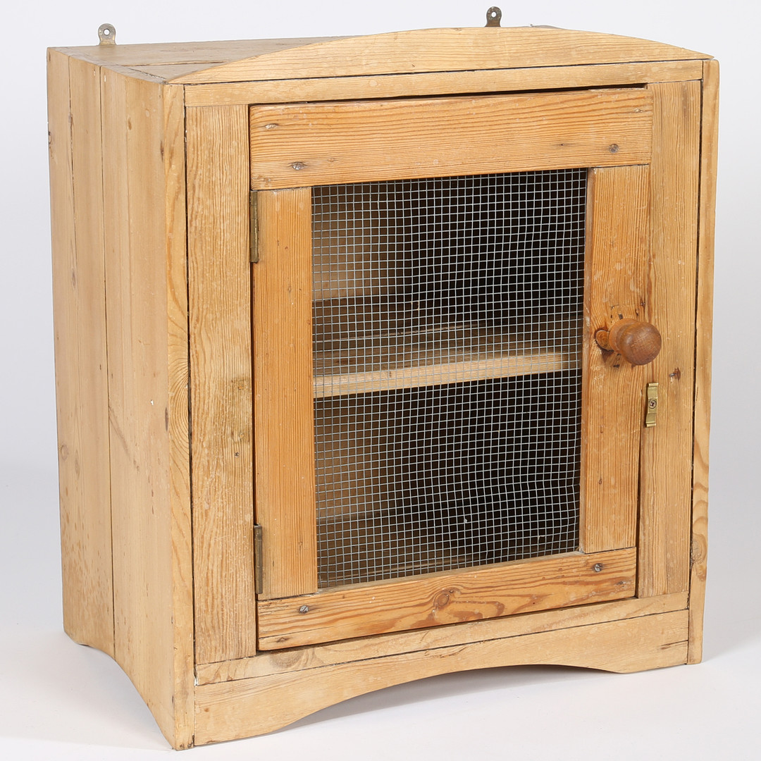 2960345. STRIPPED PINE MEAT SAFE WITH MESH WORK DOOR.