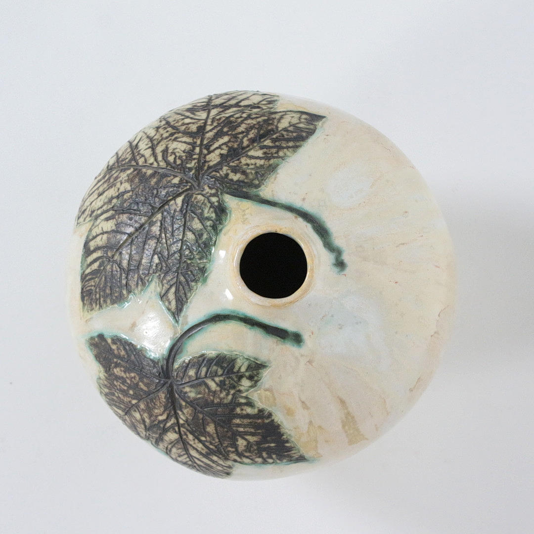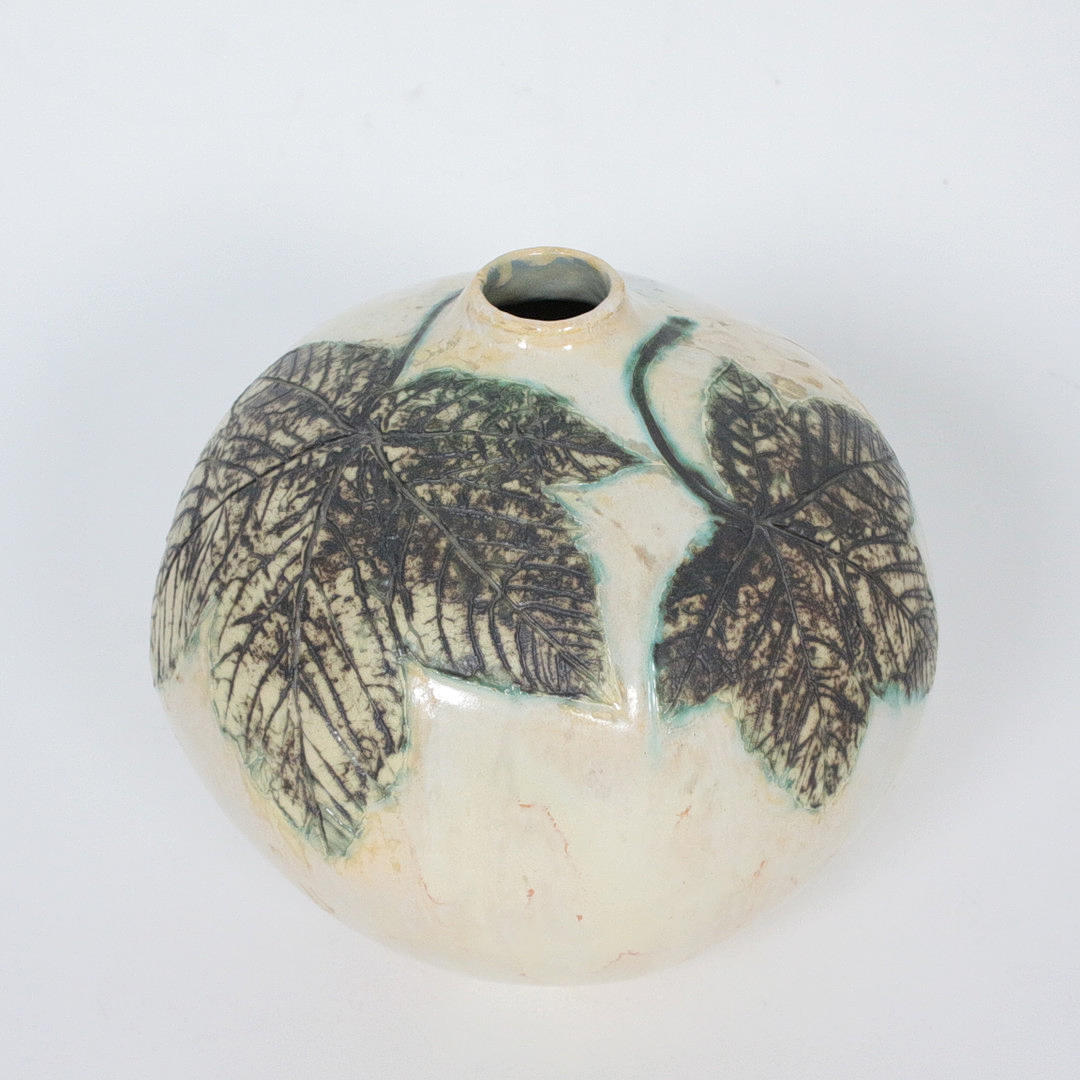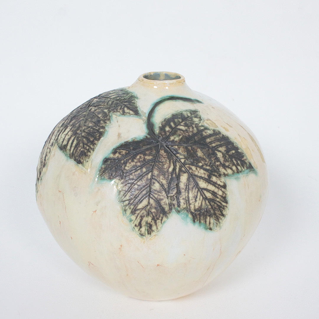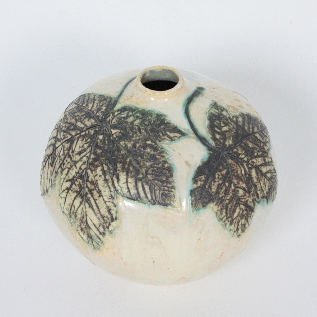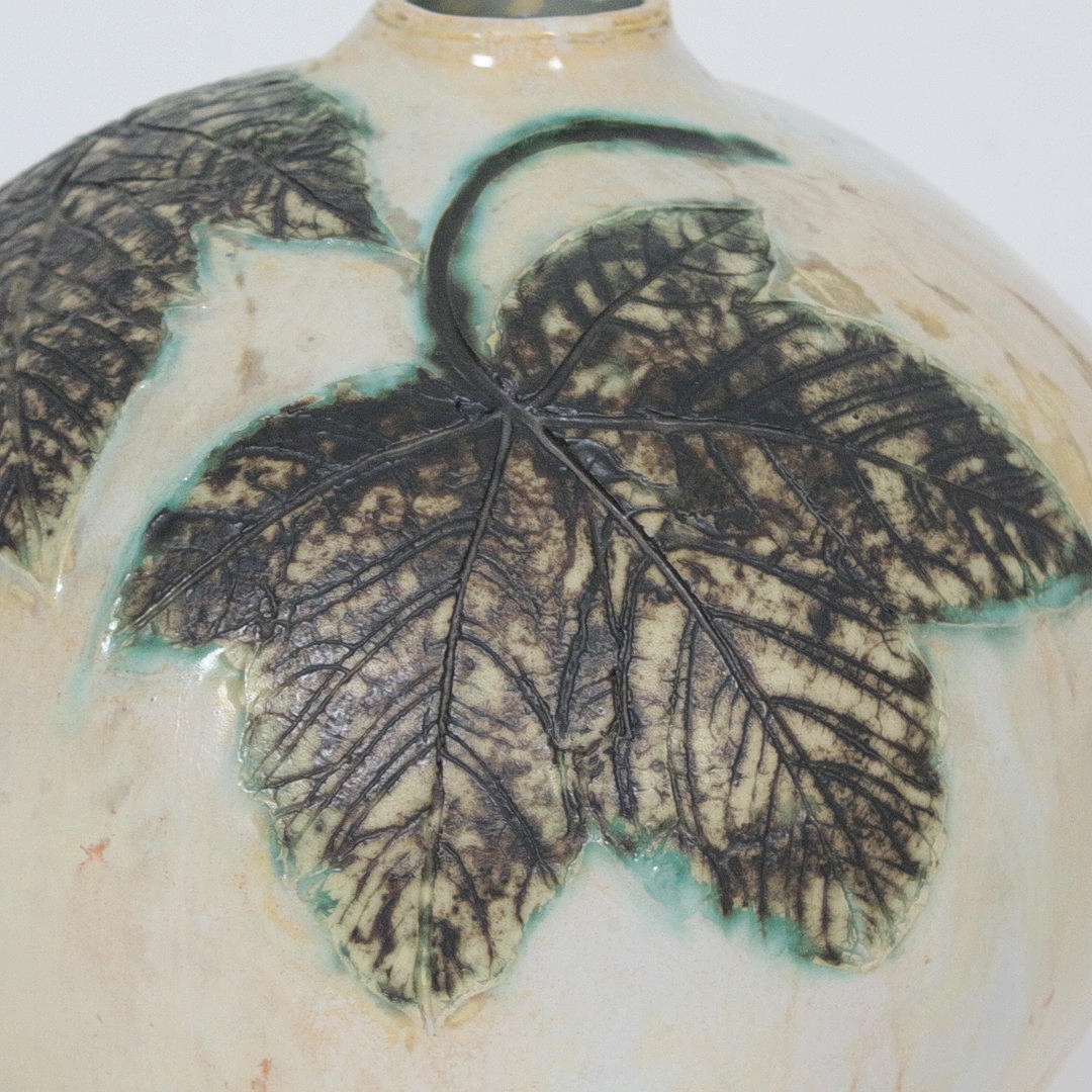 Hedwig Wagner, vase with leaf motif, 1980, ceramic, glazed, monogrammed and dated on the underside: '80', dimensions approx.: H. 21 cm, Ø 20 cm.