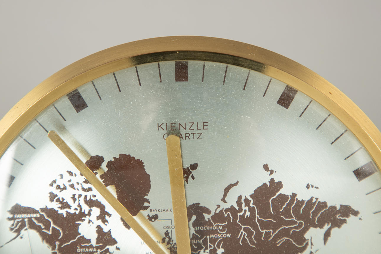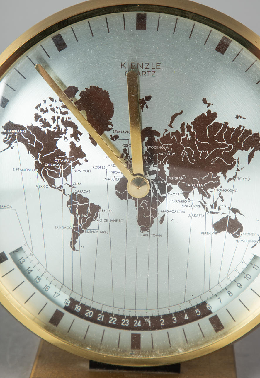 2963259. Kienzle. Table clock, world clock, brass, 1960s.