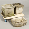2964909. A SHALLOW CONCRETE TROUGH AND TWO SQUARE PLANTERS.