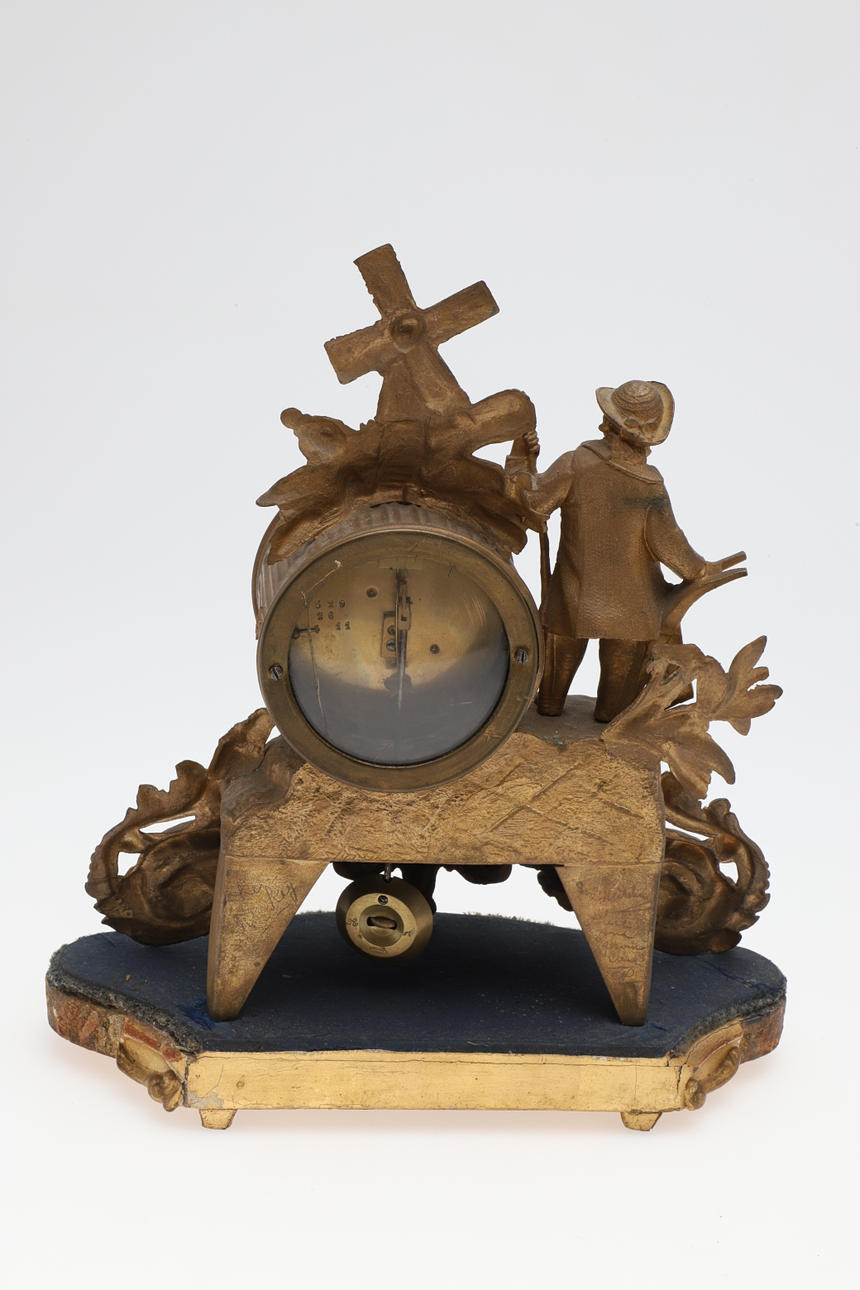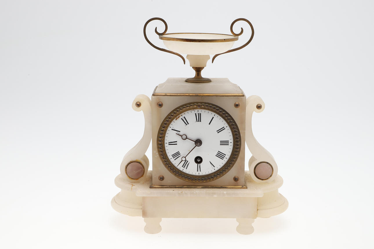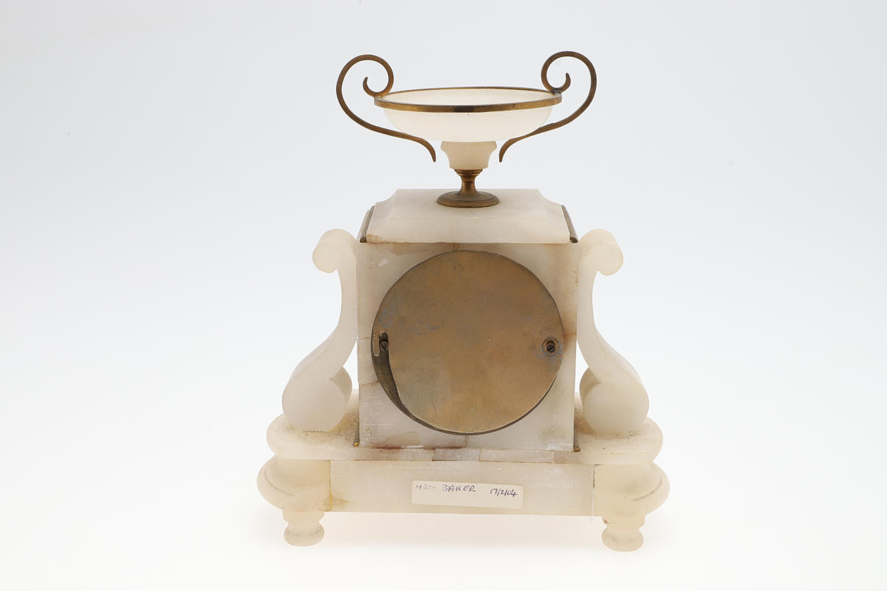 Functionality not guaranteed to either. Alabaster clock - one side of clock re-glued. Gilt metal clock - crack to glass on back.