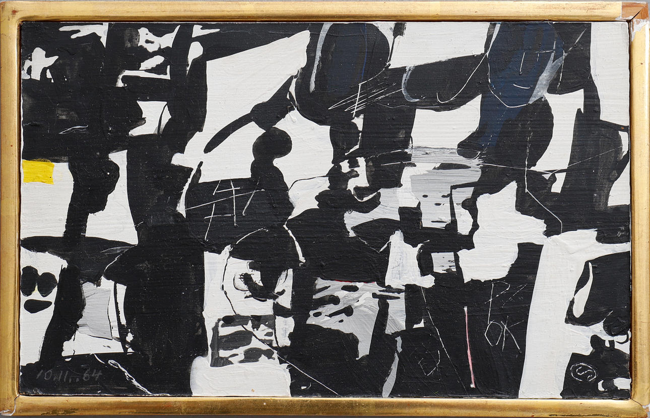 Oil on Board, monogram signed, dated in pencil 10.11.64, 15x25 cm.