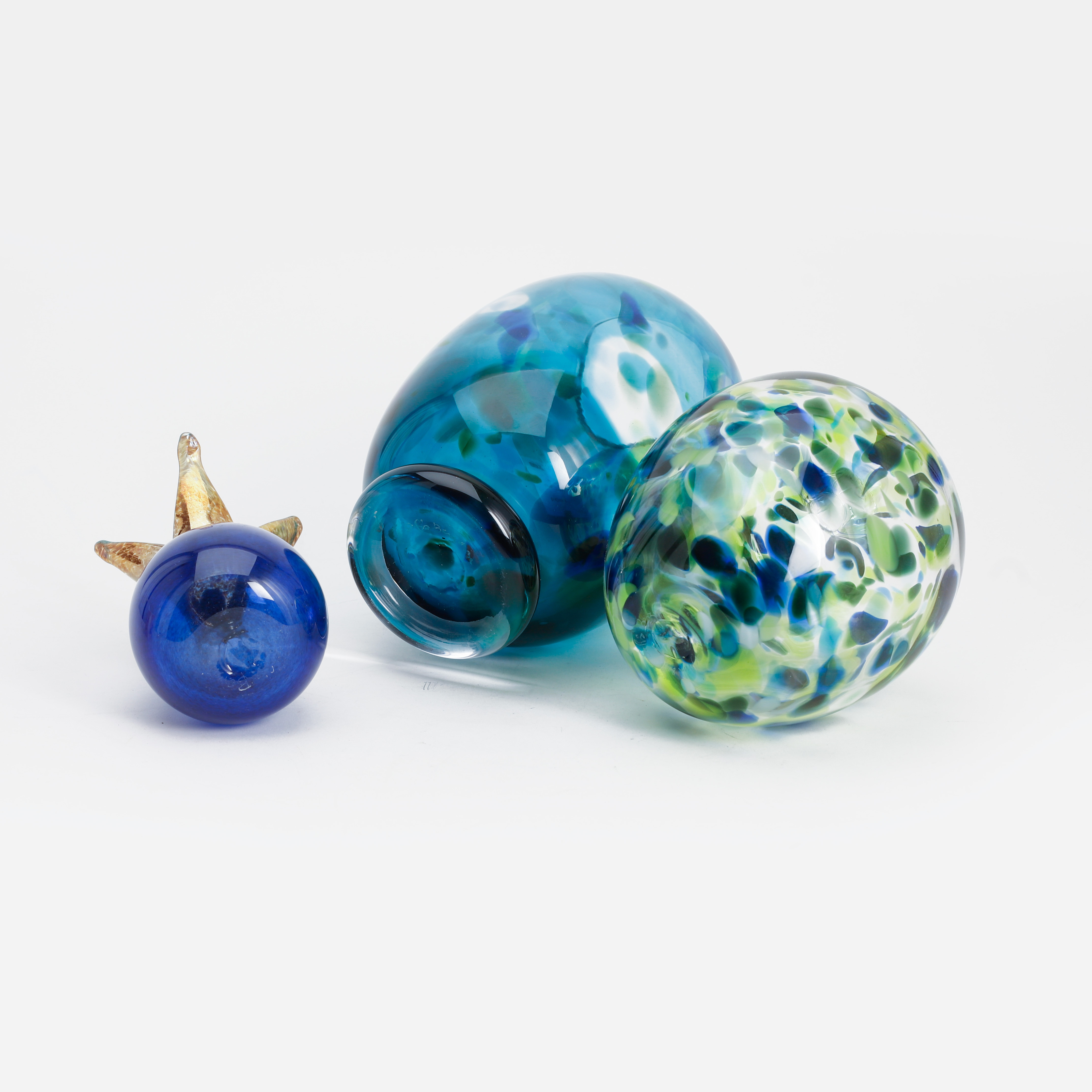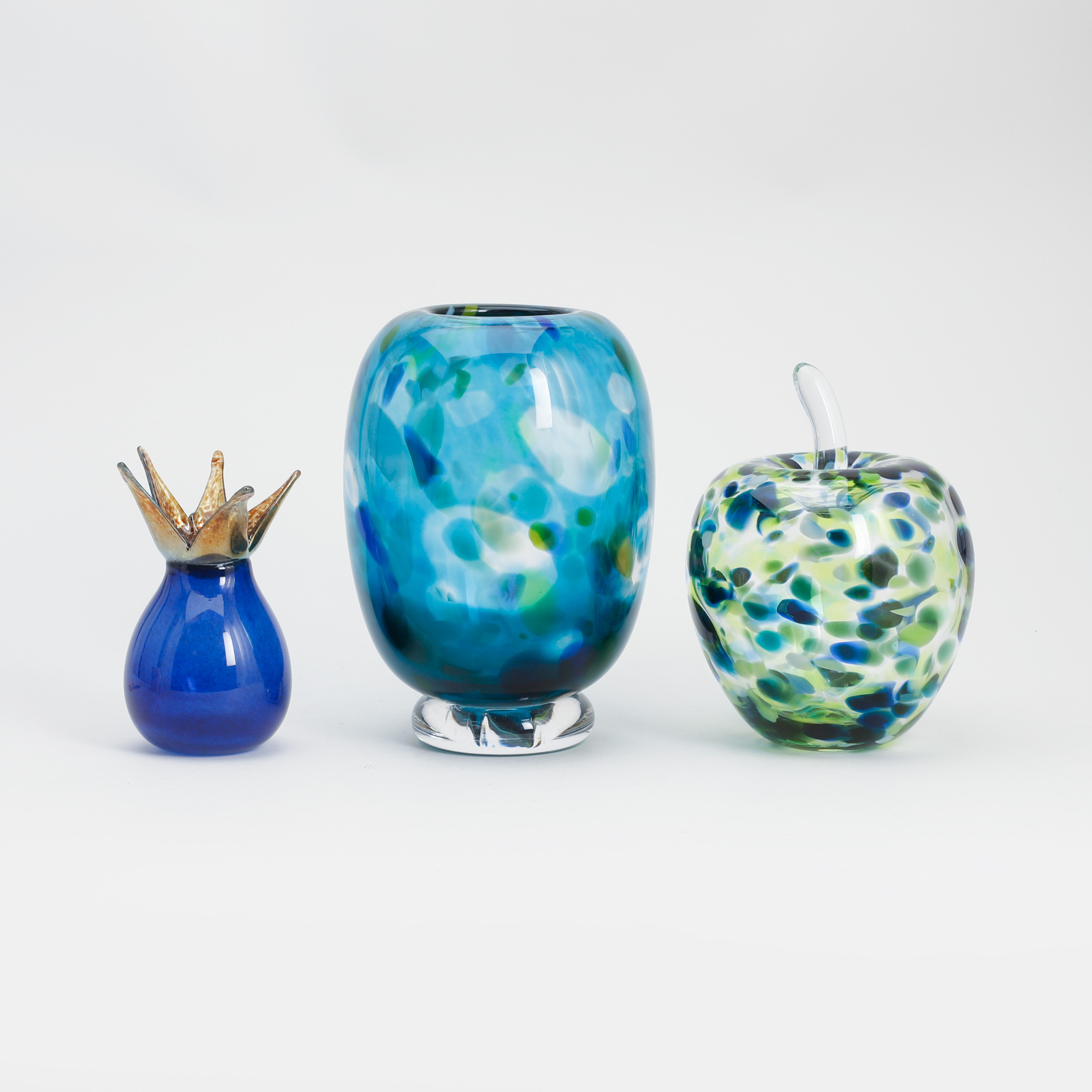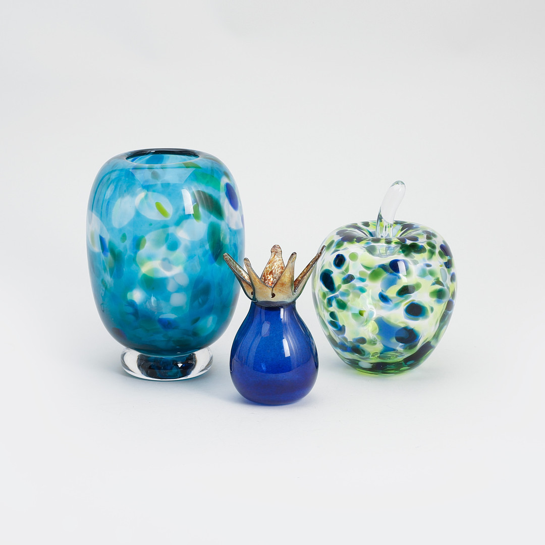 2971604. SOFIA BERGMAN. Glassware, 2 pcs and vase, signed.