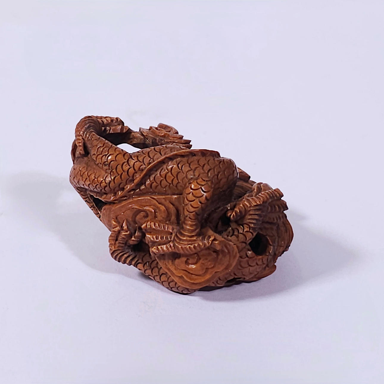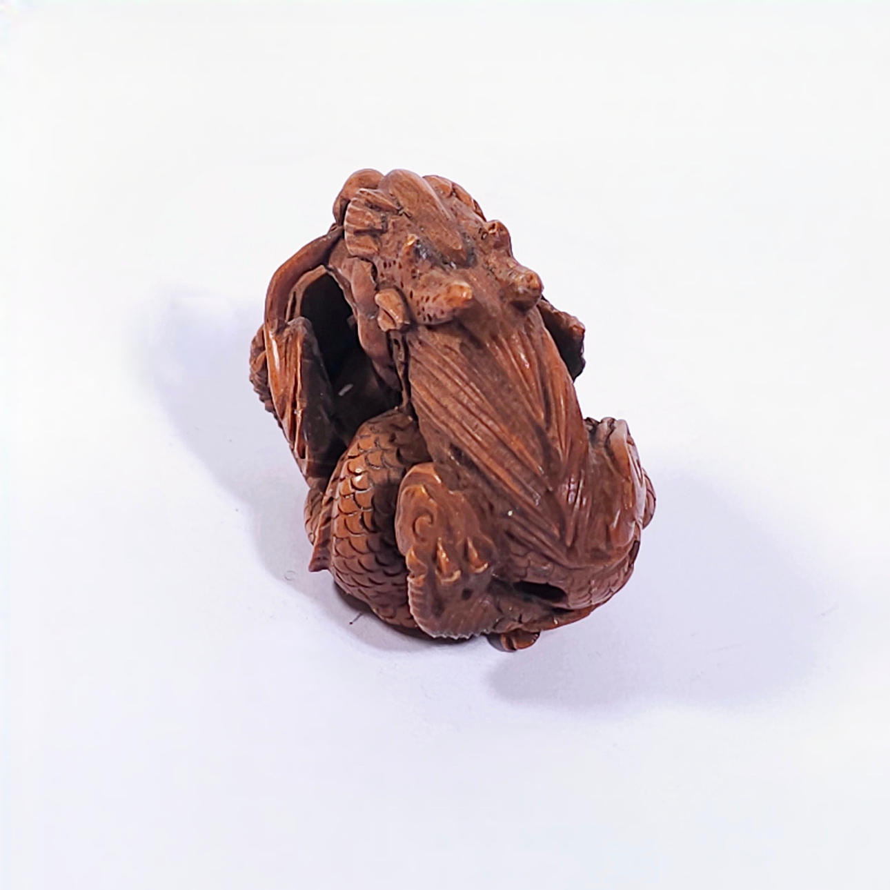 2976834. WOOD CARVED DRAGON NETSUKE.