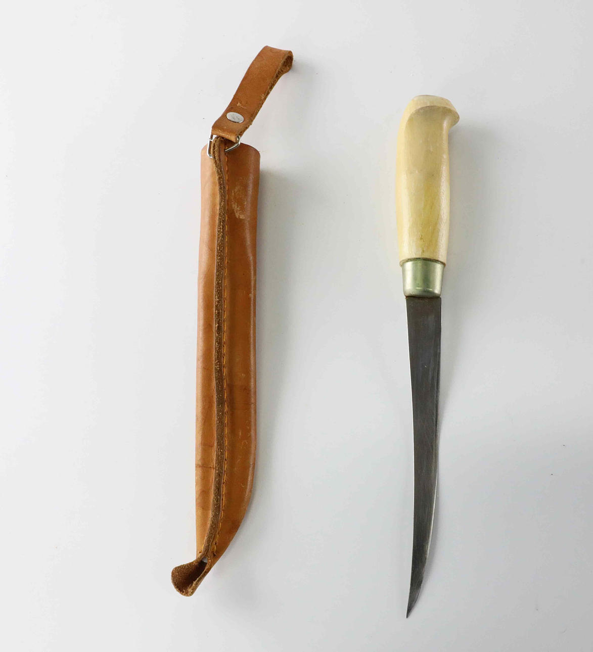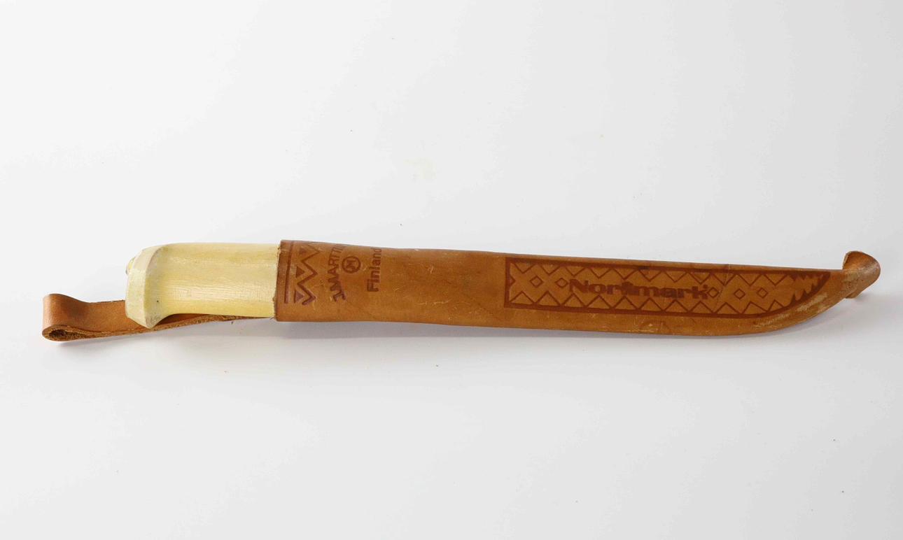 Length including knife sheath approx. 30 cm Knife blade approx. 16 cm, signed on the blade.
