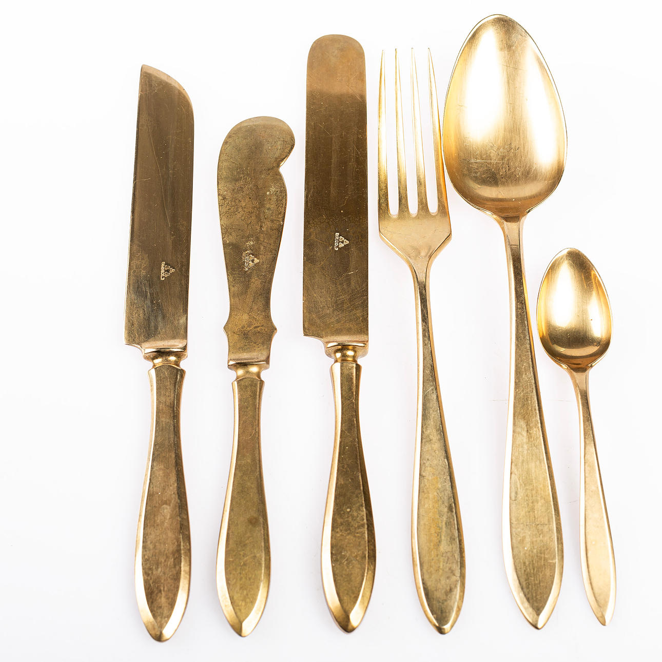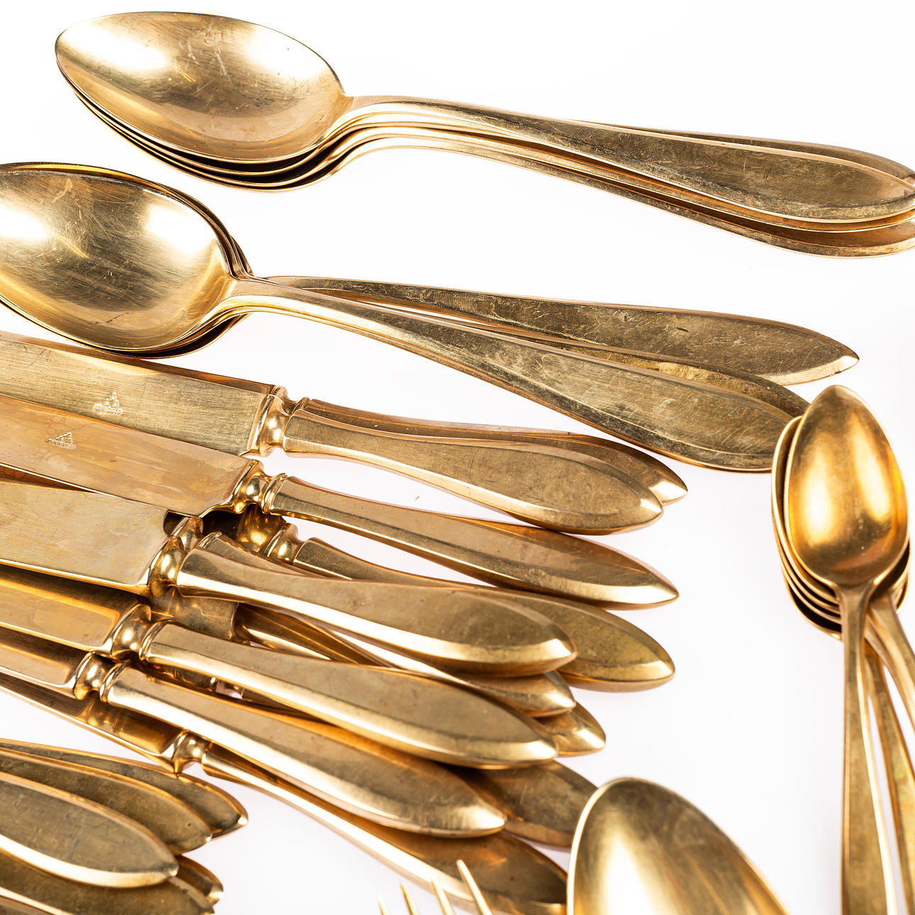 12 forks 12 knives 9 spoons 12 coffee spoons Butter knife Knife Fork length for reference: approx. 20 cm.