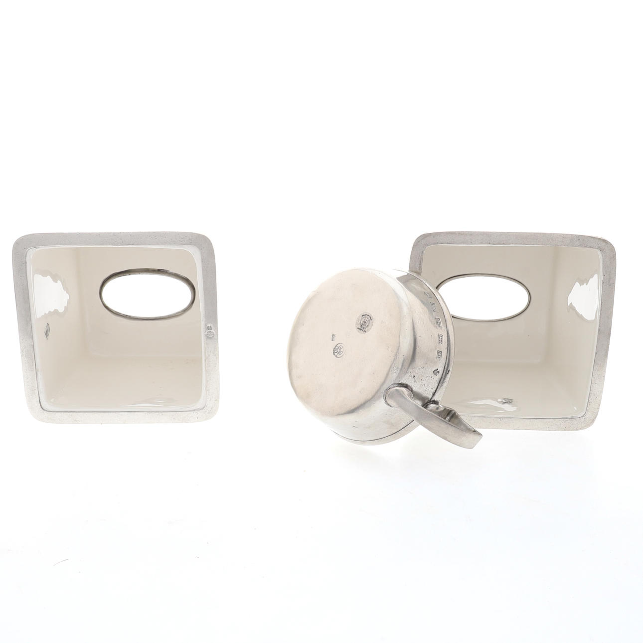 14cm high, and a Marinoni pewter porringer, 16cm across, all with original boxes (3).