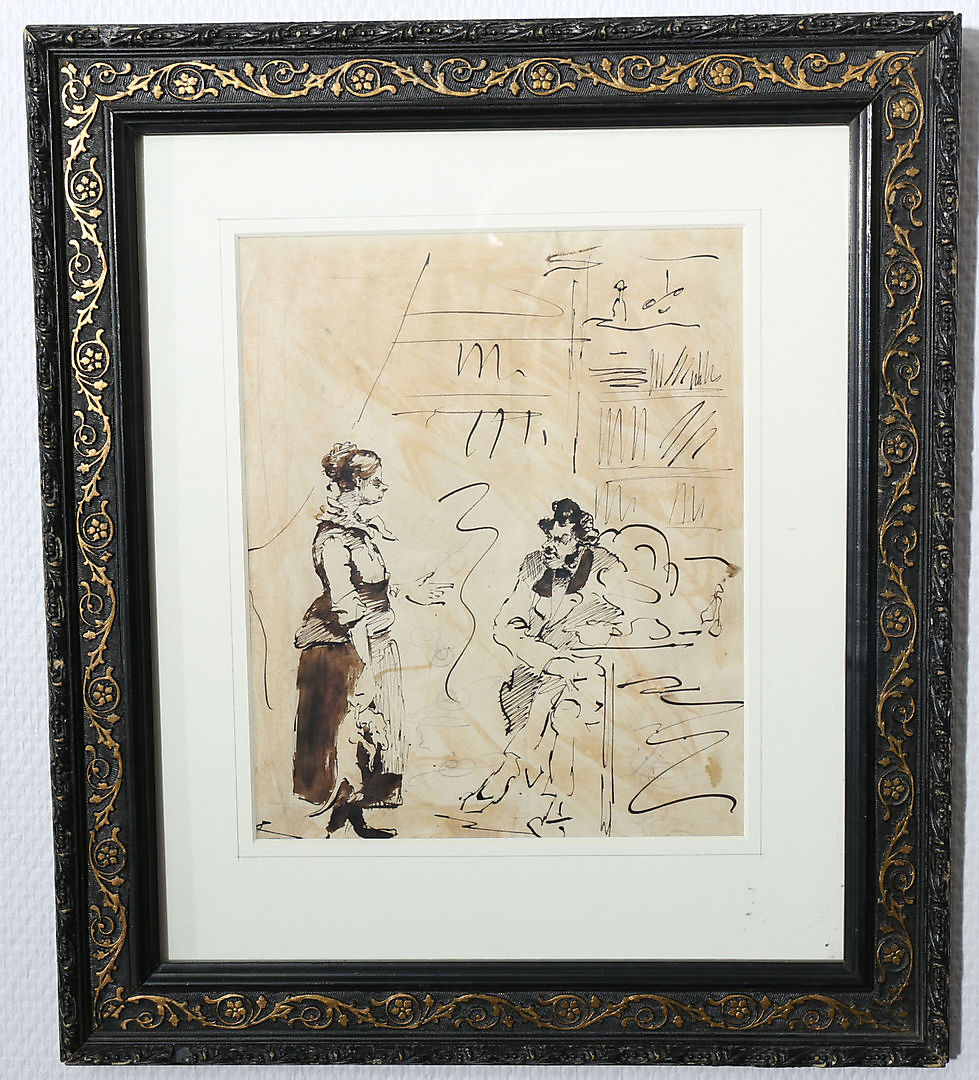 299020. AUGUST HAGBORG. Ink drawing, signed.