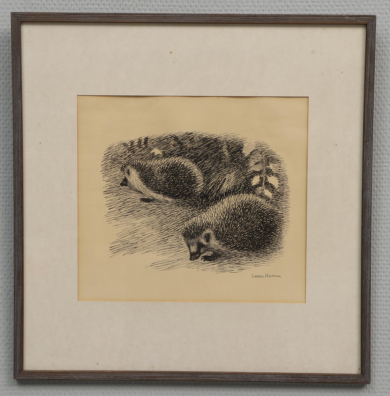 2991513. AAGE SIKKER HANSEN. Lithograph, hedgehogs, signed.