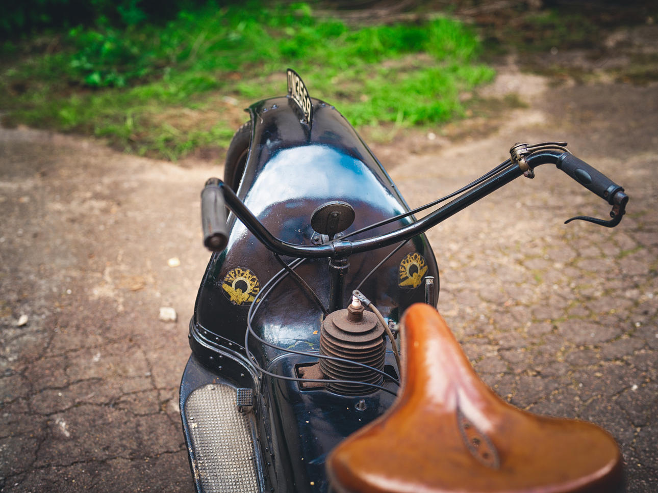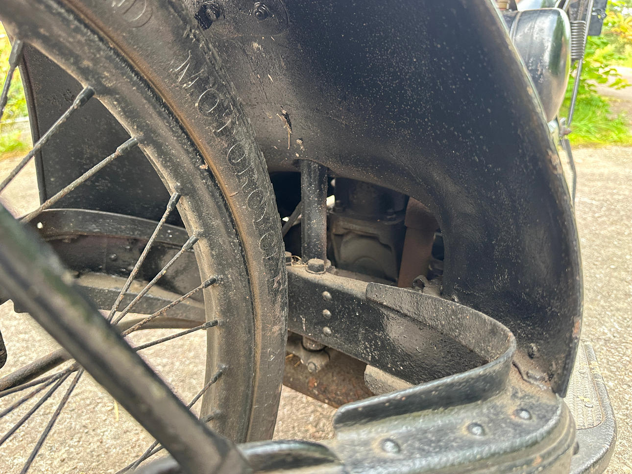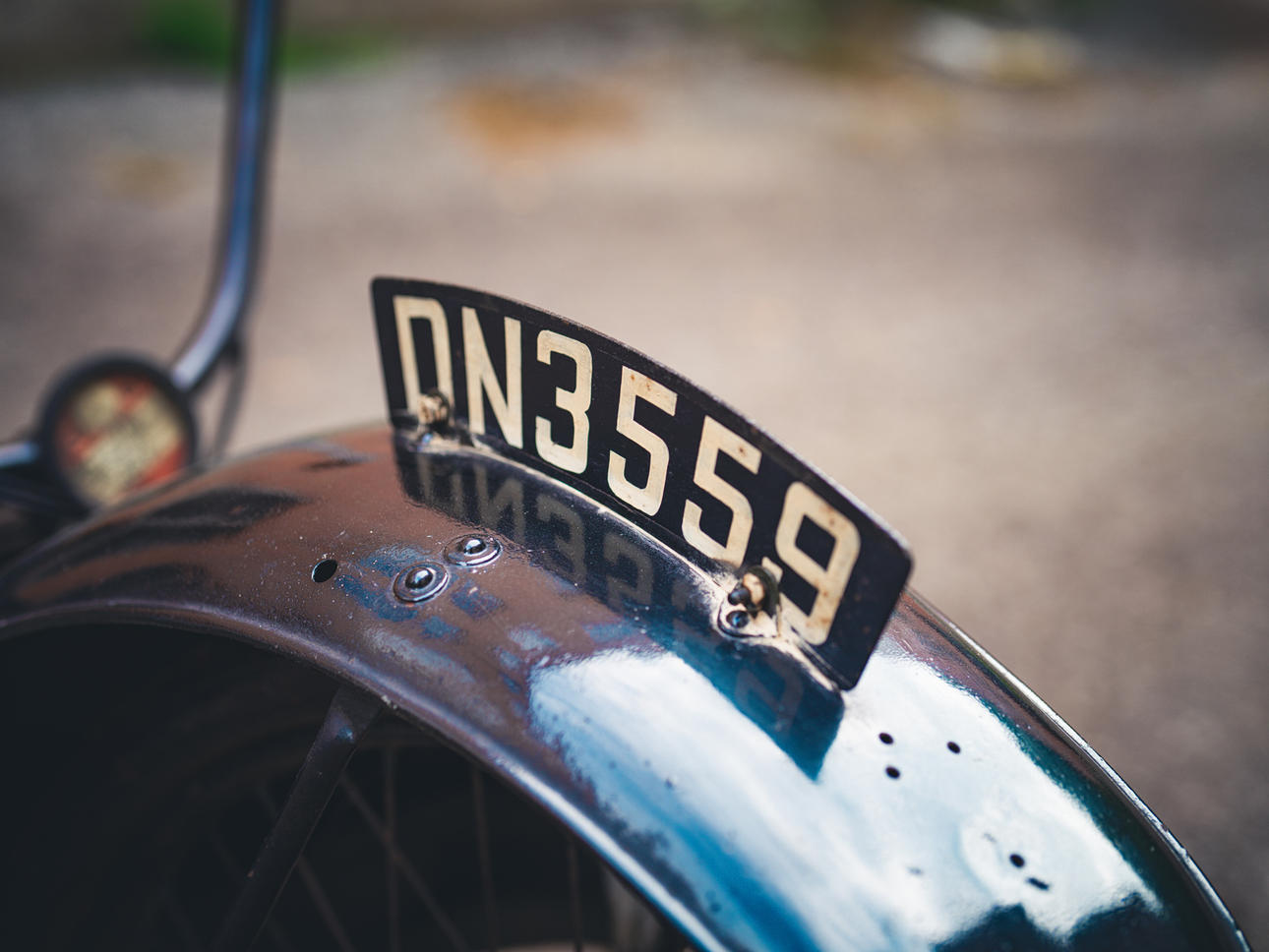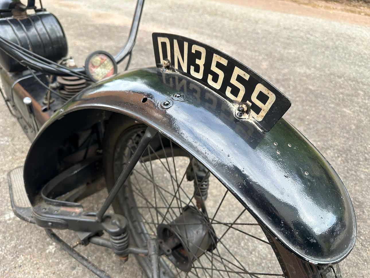 Has old English license plate DN3559 and old registration book from England matching with the license plate mounted on vehicle however the frame number is not readable so cannot confirm if frame number is matching.