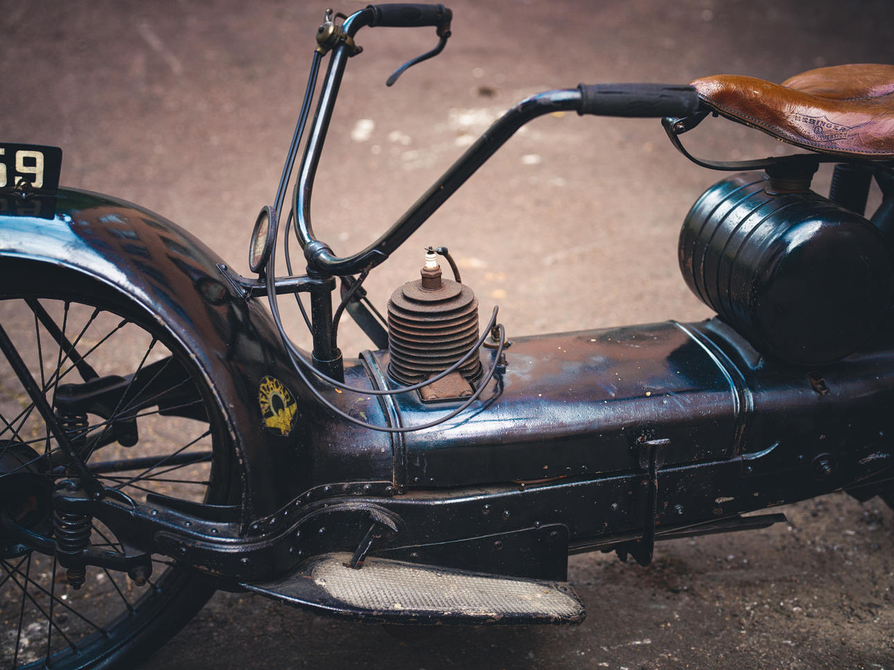 Model year: 1922 Frame number: not readable, see photo Engine: 1-cylinder, 2-stroke, 221cc Engine number: 1819 Current owner bought it from honorable man Frank Gilbert in Derby, England in 1983.