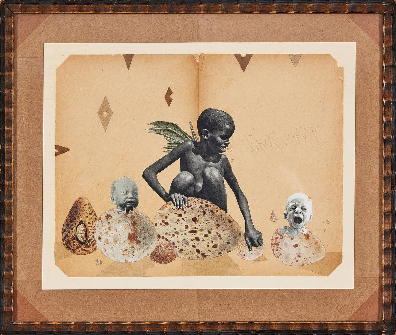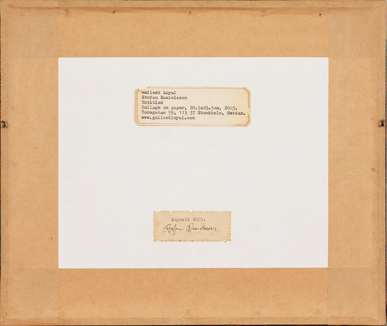 Collage on paper, image dimensions approx. 18x13 cm / sheet size 20 x 26 cm. Signed and dated on verso, August 2005.