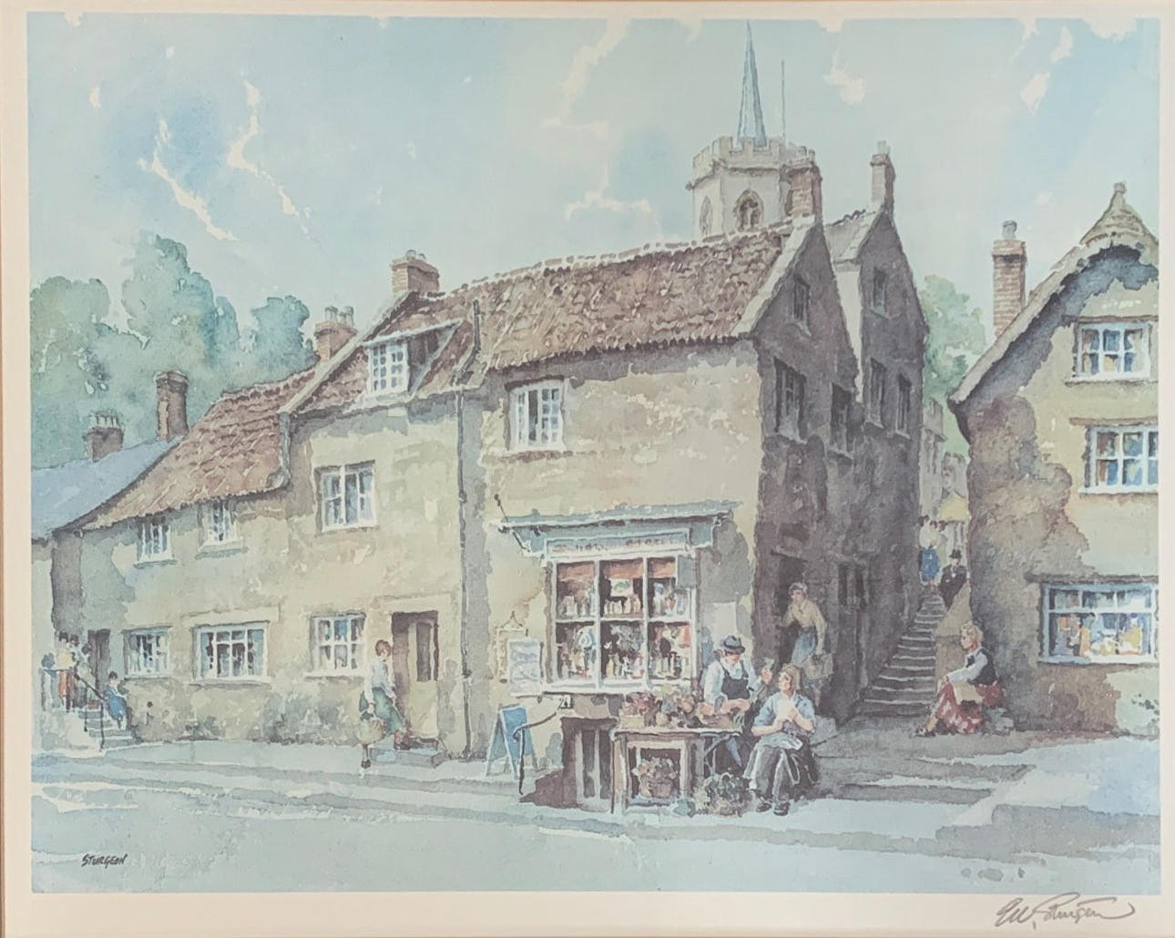 A framed print of a street scene by Eric Sturgeon with blind stamp, frame size 70 X 59cm.