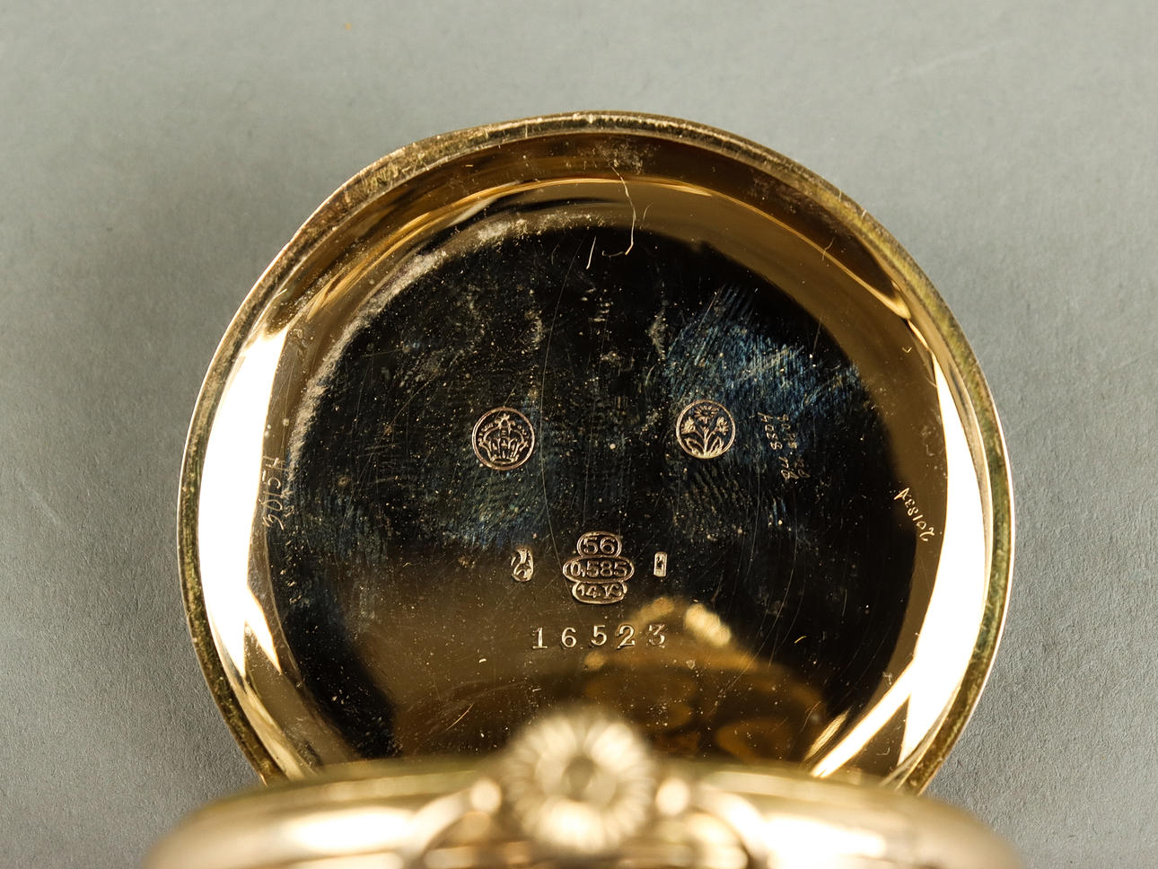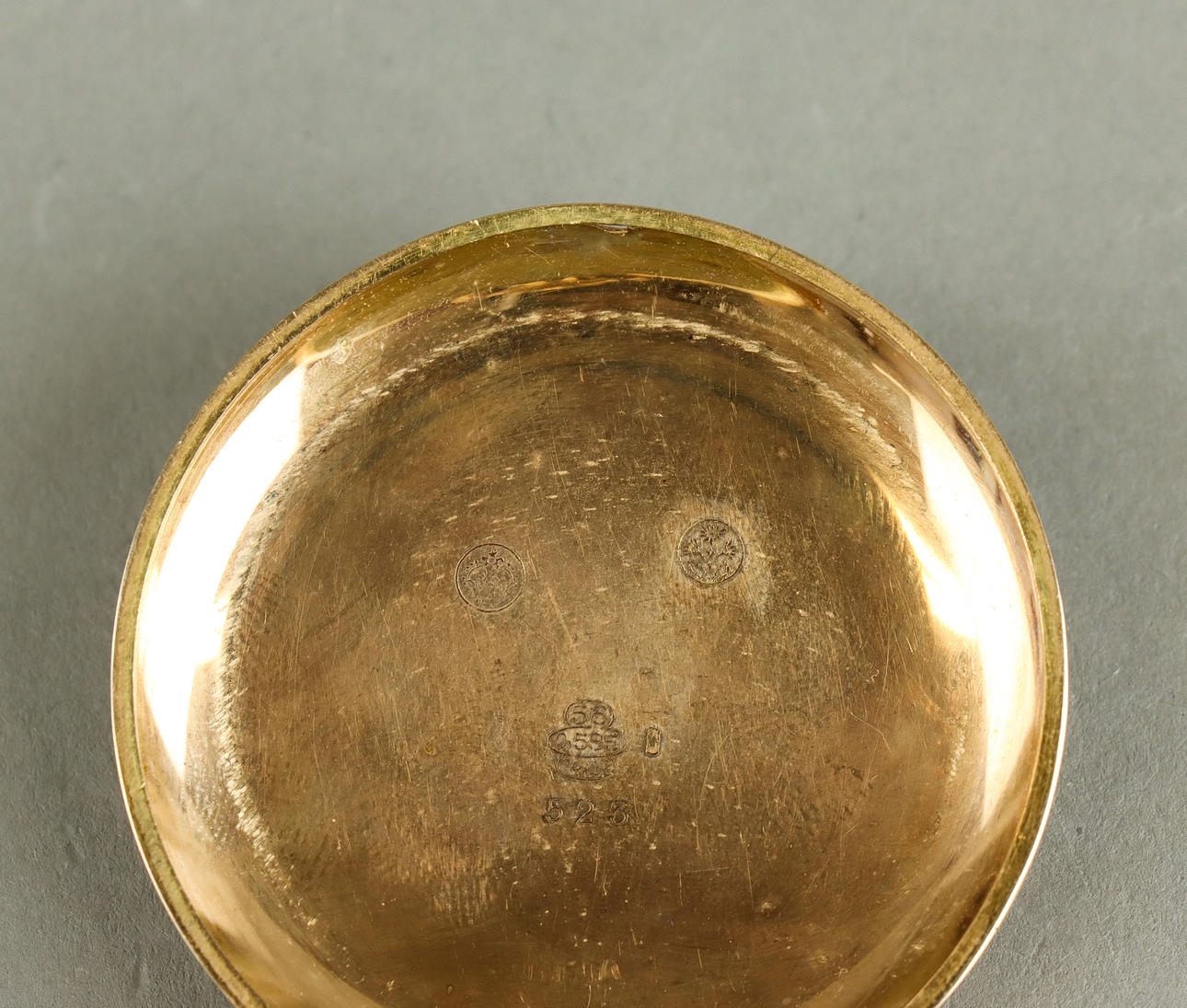 18/1900s, inner lid double, 15 stones, diameter 47 mm, weight 66 grams.