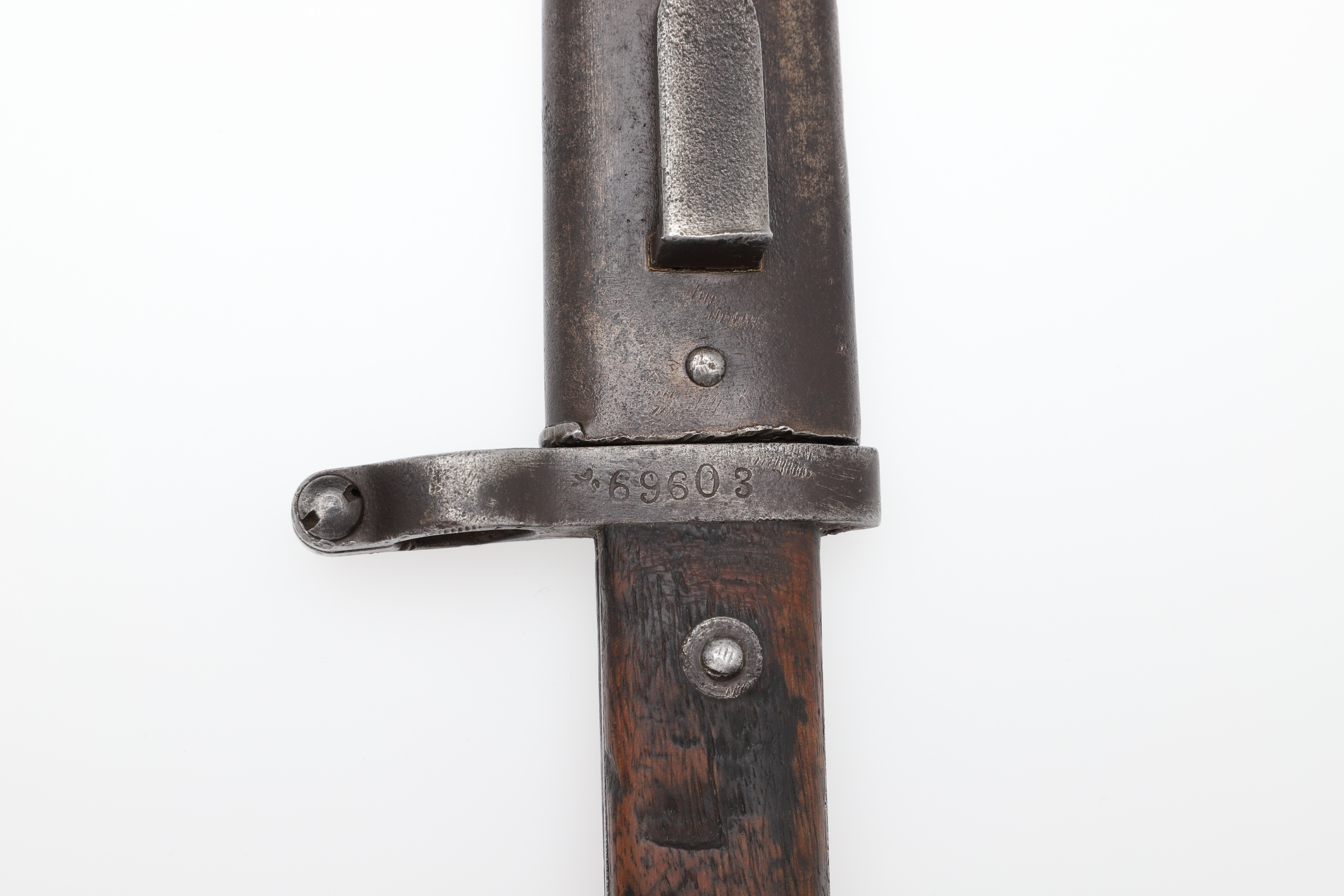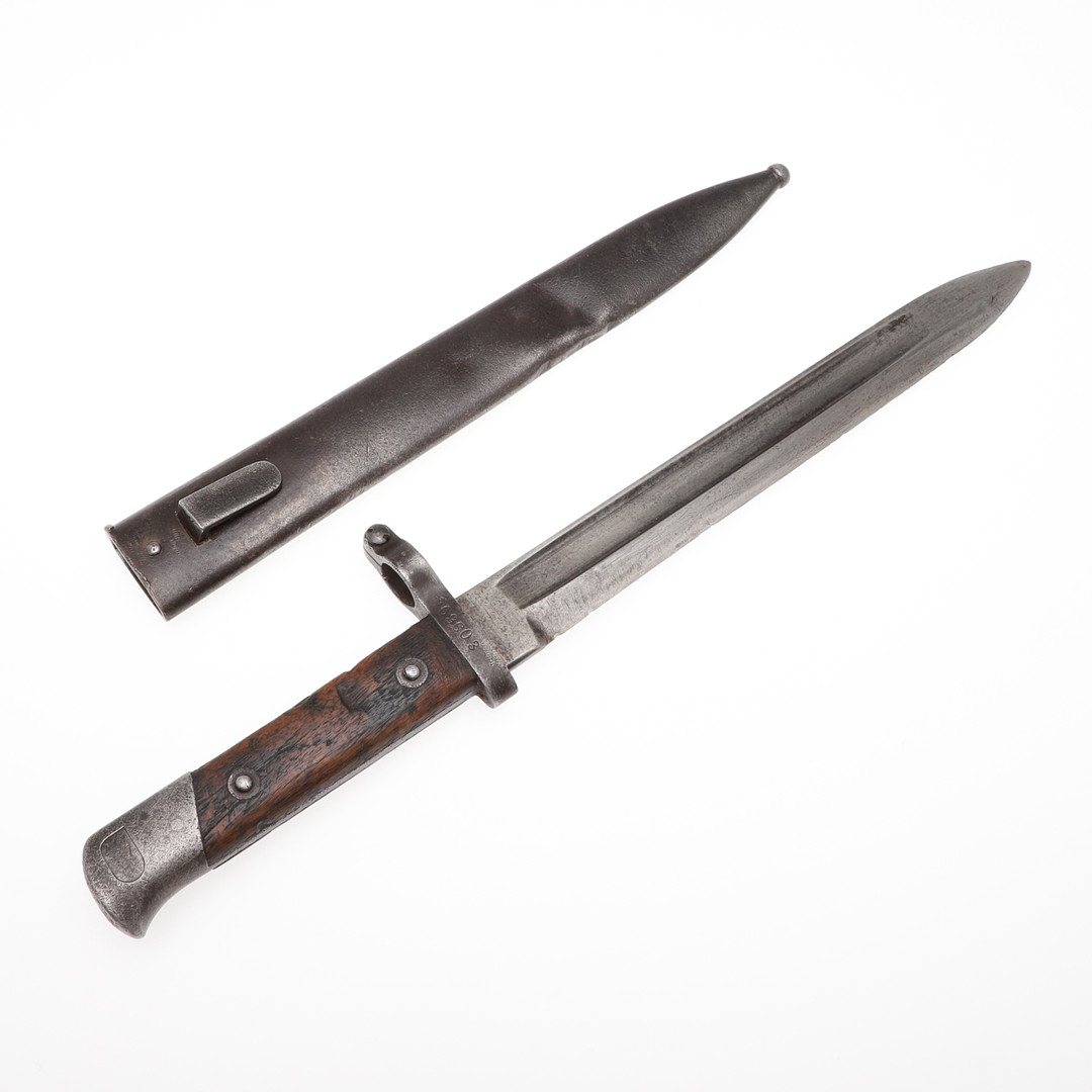 138. 2999577. AN AUSTIRAN 1895 PATTERN BAYONET AND SCABBARD.